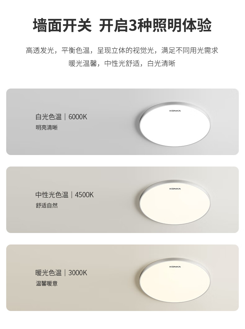 康佳三防LED臥室燈吸頂燈現(xiàn)代簡(jiǎn)約超薄陽(yáng)臺(tái)過(guò)道玄關(guān)燈具廣東中山燈飾 三防燈45cm三色42瓦(15-20平) 自營(yíng)