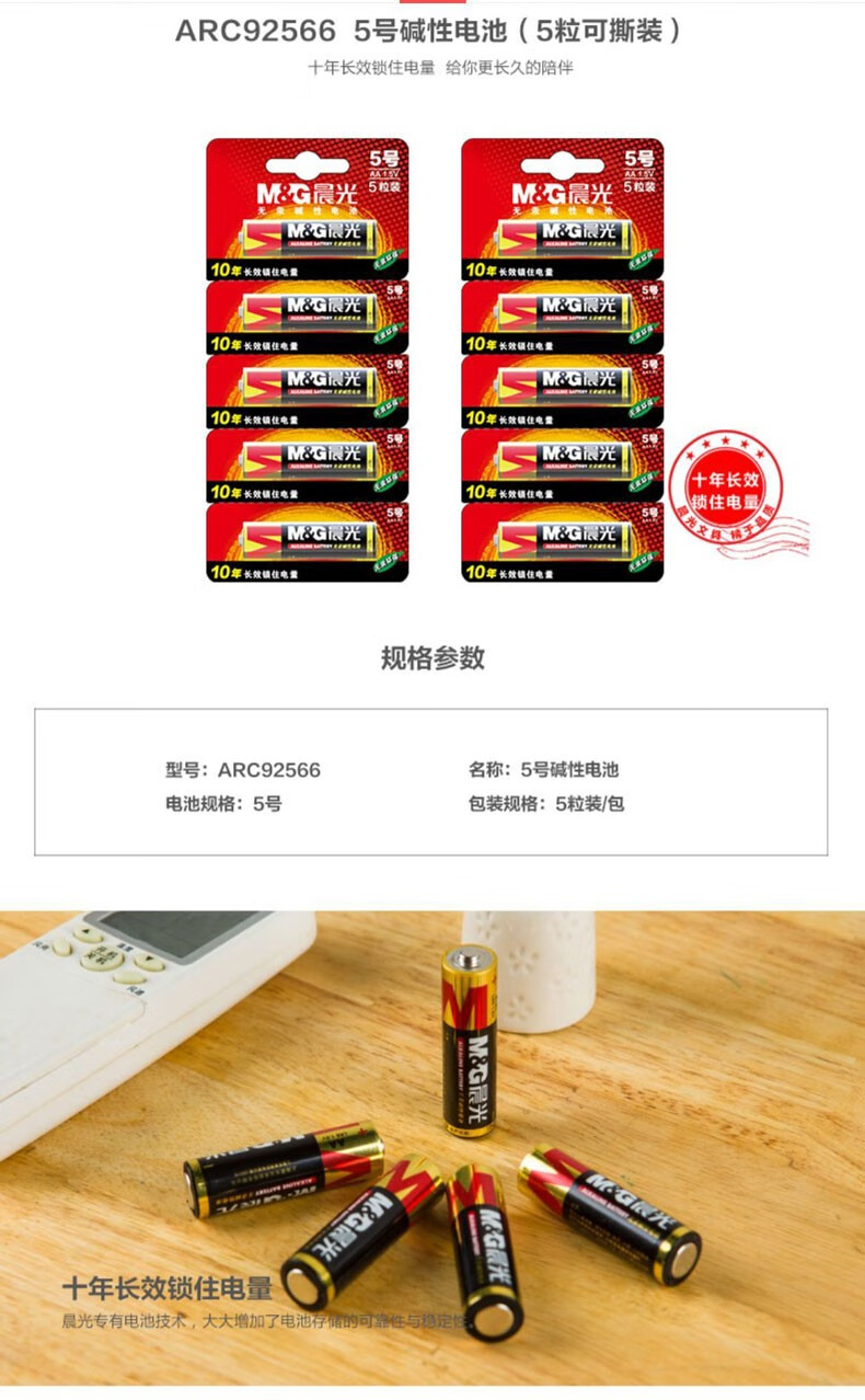 晨光(M&G) 電池五號七號電池兒童玩具遙控器鼠標電池5號7號無汞堿性計算器電池辦公用品 7號堿性電池(5??伤貉b)ARC92567 自營