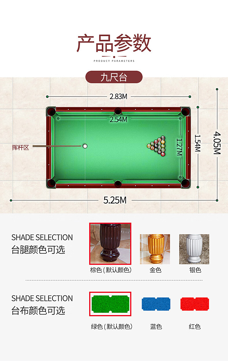 健倫(JEEANLEAN)臺球桌標準成人8球家用桌球桌黑八九尺臺球桌JLGBA1 自營