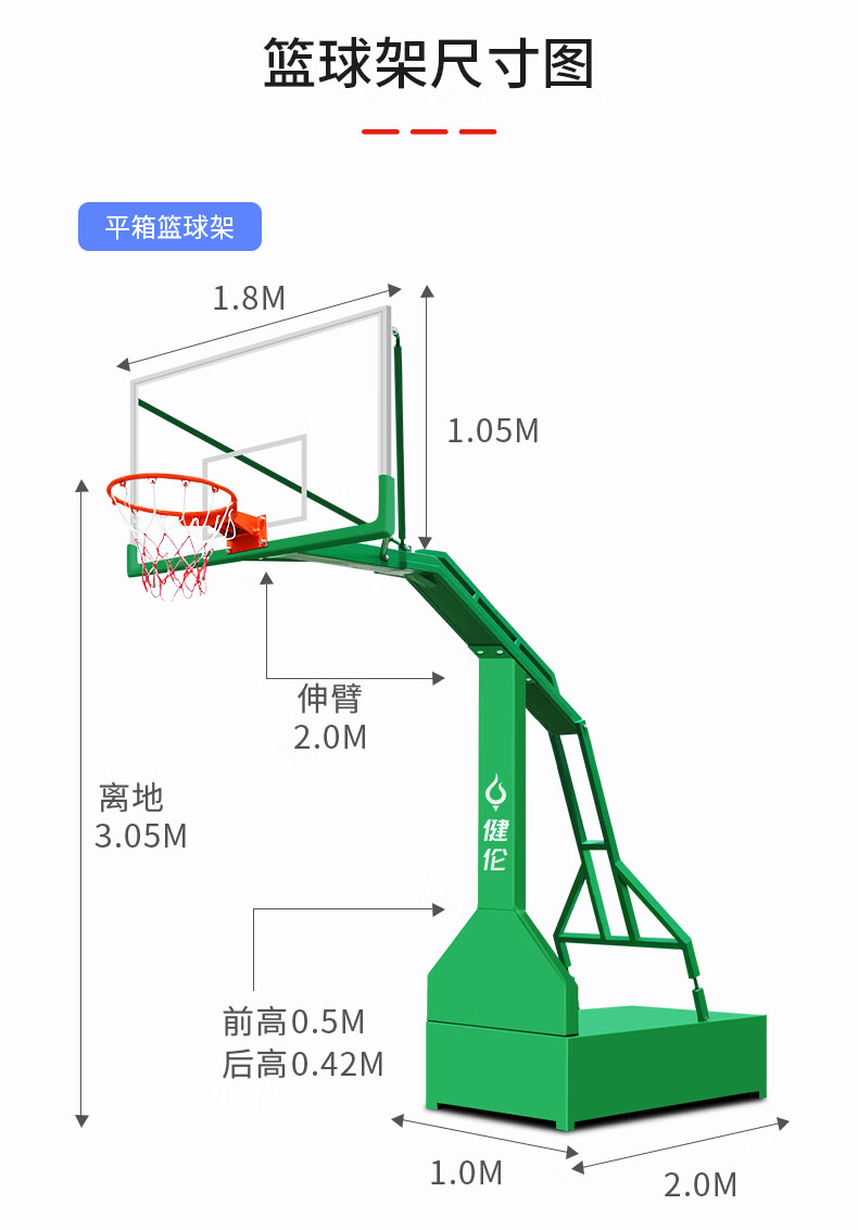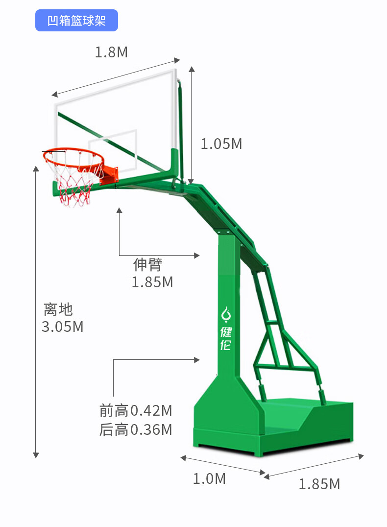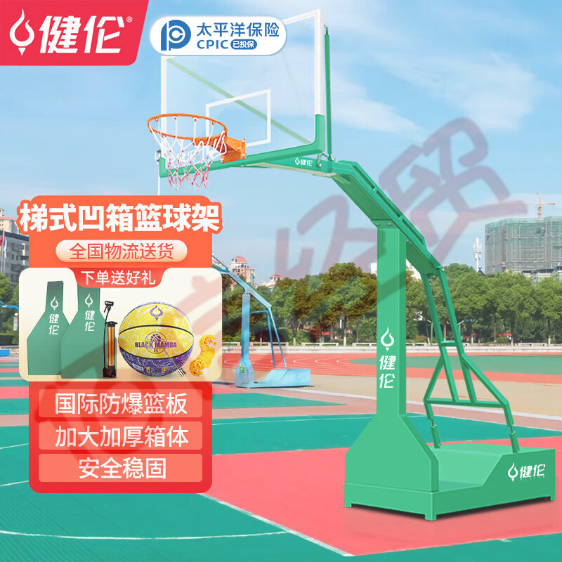 健倫籃球架成人戶外標(biāo)準籃球框室外移動凹箱球架2支(免費安裝) 自營