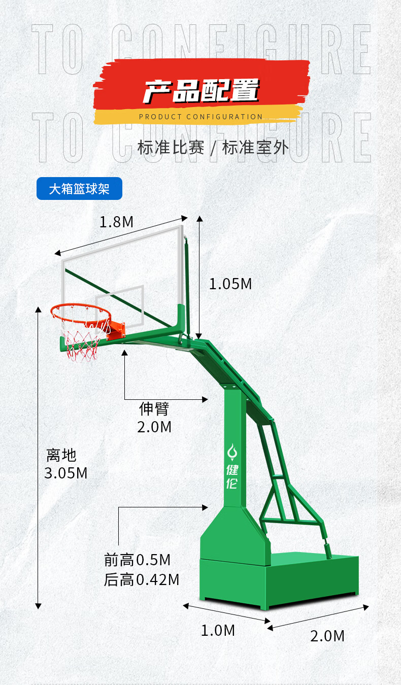 健倫(JEEANLEAN)JLAA161成人標準比賽訓練平箱籃球架綠色/單只 自營