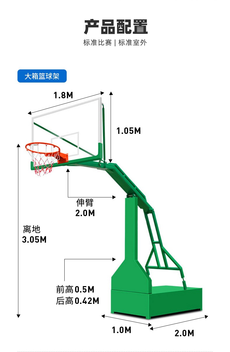 健倫(JEEANLEAN)JLAA175戶外標(biāo)準(zhǔn)籃球架比賽訓(xùn)練訓(xùn)練比賽專用 海燕式雙翼凹箱標(biāo) 自營(yíng)