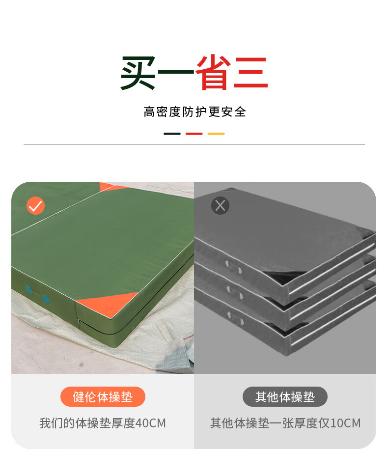 健倫(JEEANLEAN)JL72030學校專用體操墊仰臥起坐墊跳高墊200*300*40cm40密度二折 自營