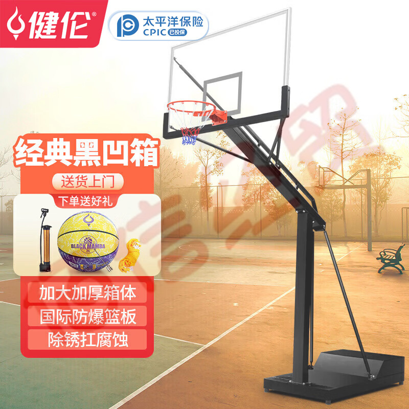 健倫(JEEANLEAN)JLAA166籃球架 成人標(biāo)準(zhǔn)室內(nèi)戶外移動(dòng)公園學(xué)校社區(qū)黑色凹箱籃球架 自營