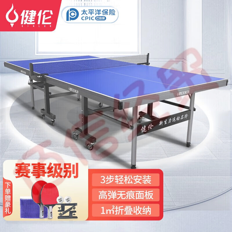 健倫室內(nèi)家用帶輪可折疊移動標(biāo)準(zhǔn)乒乓球桌25MM賽事級乒乓球臺JL395 自營
