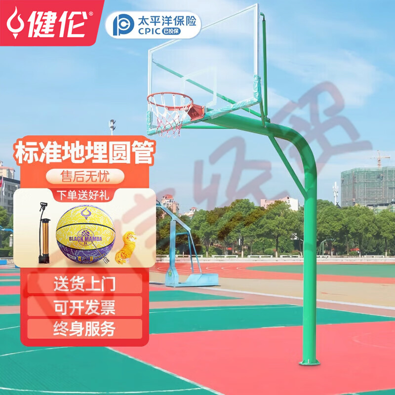 健倫(JEEANLEAN)JLAA119籃球架 標準成人戶外移動地埋式籃球架 綠色圓管 自營