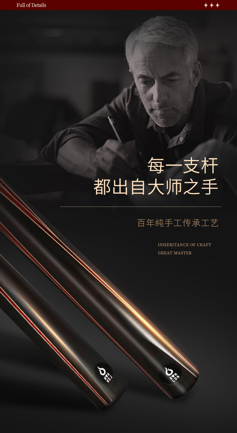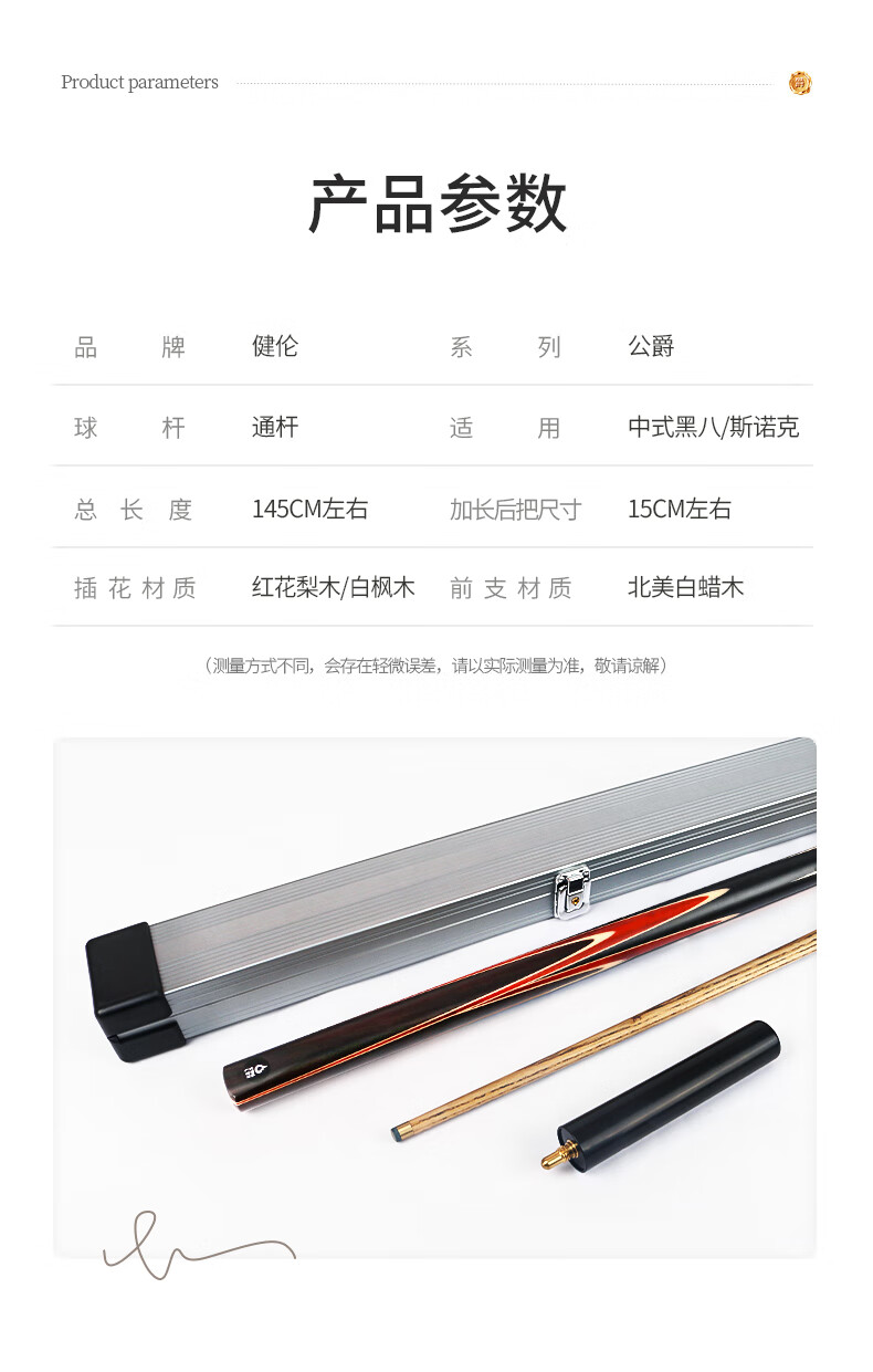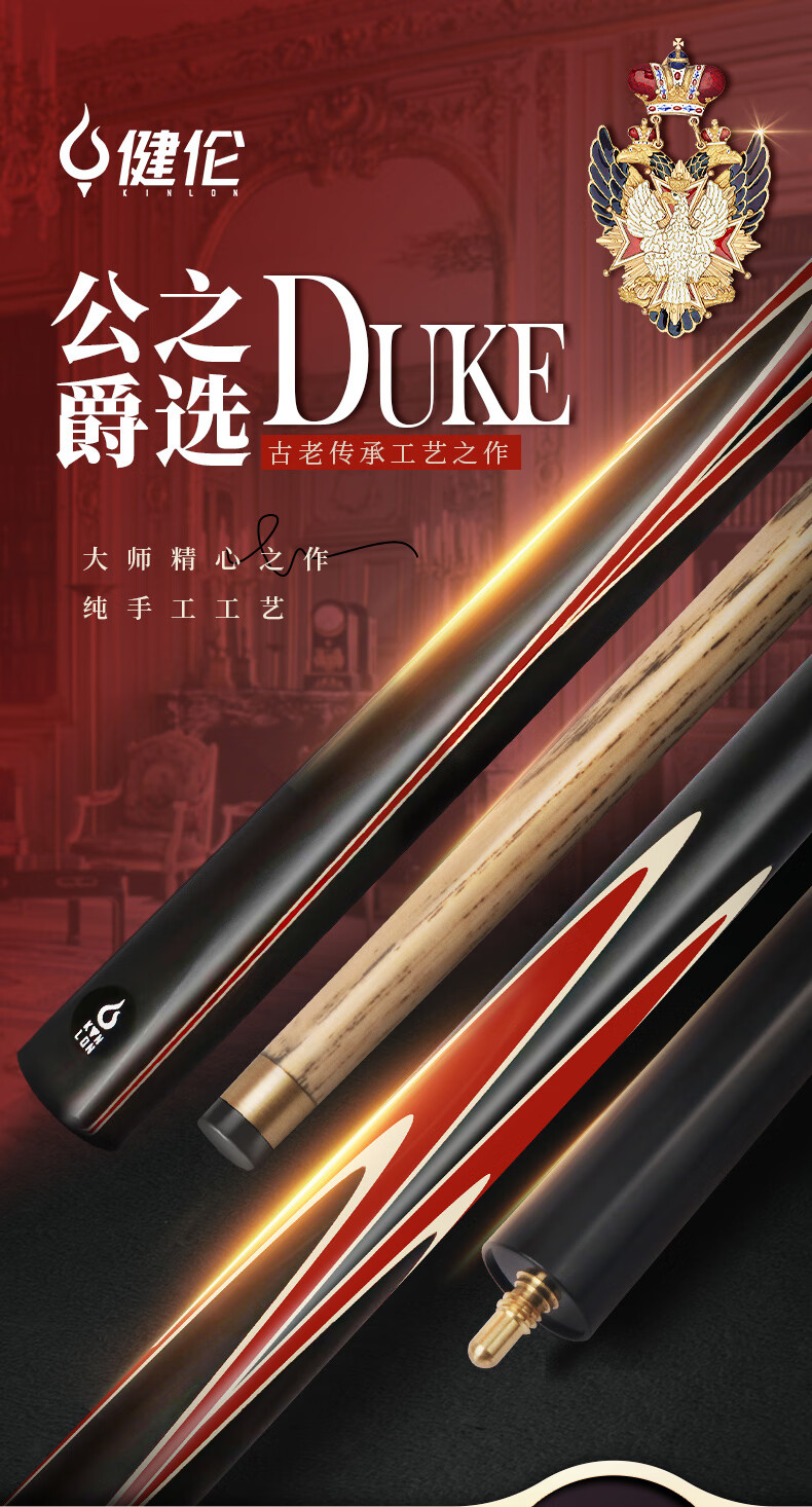 健倫(JEEANLEAN)JLAB212公爵臺球桿斯諾克球桿小頭黑8中式黑八中頭八球桌球桿 自營