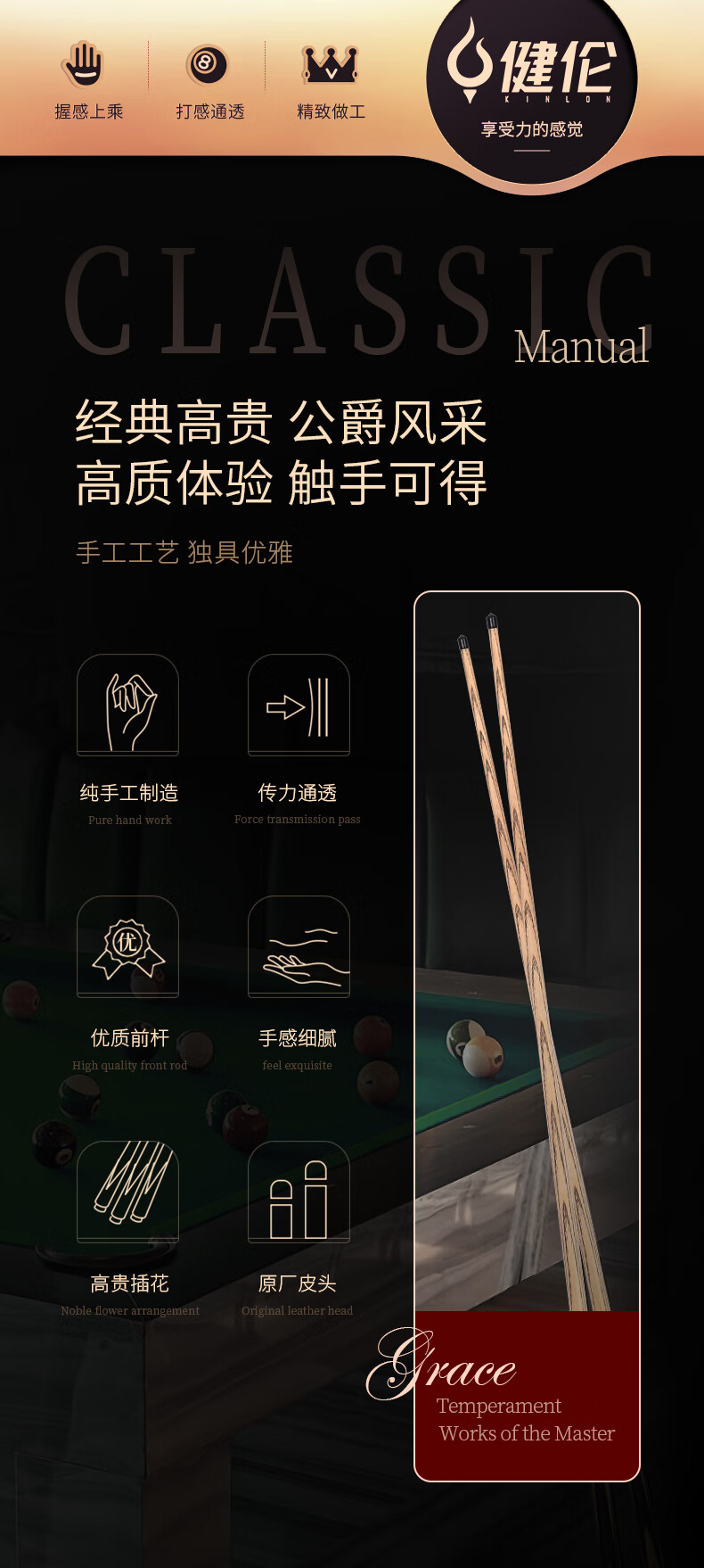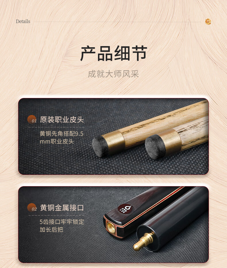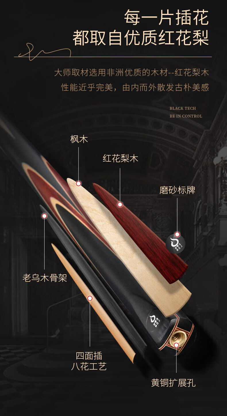 健倫(JEEANLEAN)JLAB212公爵臺球桿斯諾克球桿小頭黑8中式黑八中頭八球桌球桿 自營