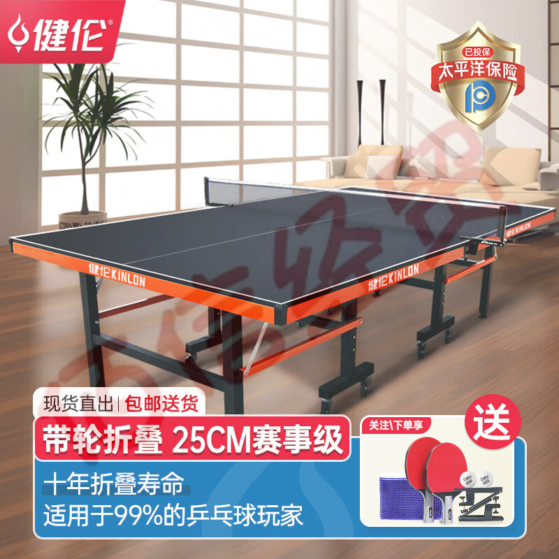 健倫 室內(nèi)帶輪折疊乒乓球桌25MM厚面板家用商用乒乓球臺比賽級JL388S 自營