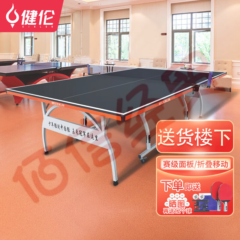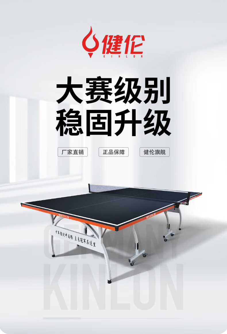 健倫乒乓球桌室內(nèi)家用帶輪可折疊標準移動乒乓球臺案子JLAC112 自營