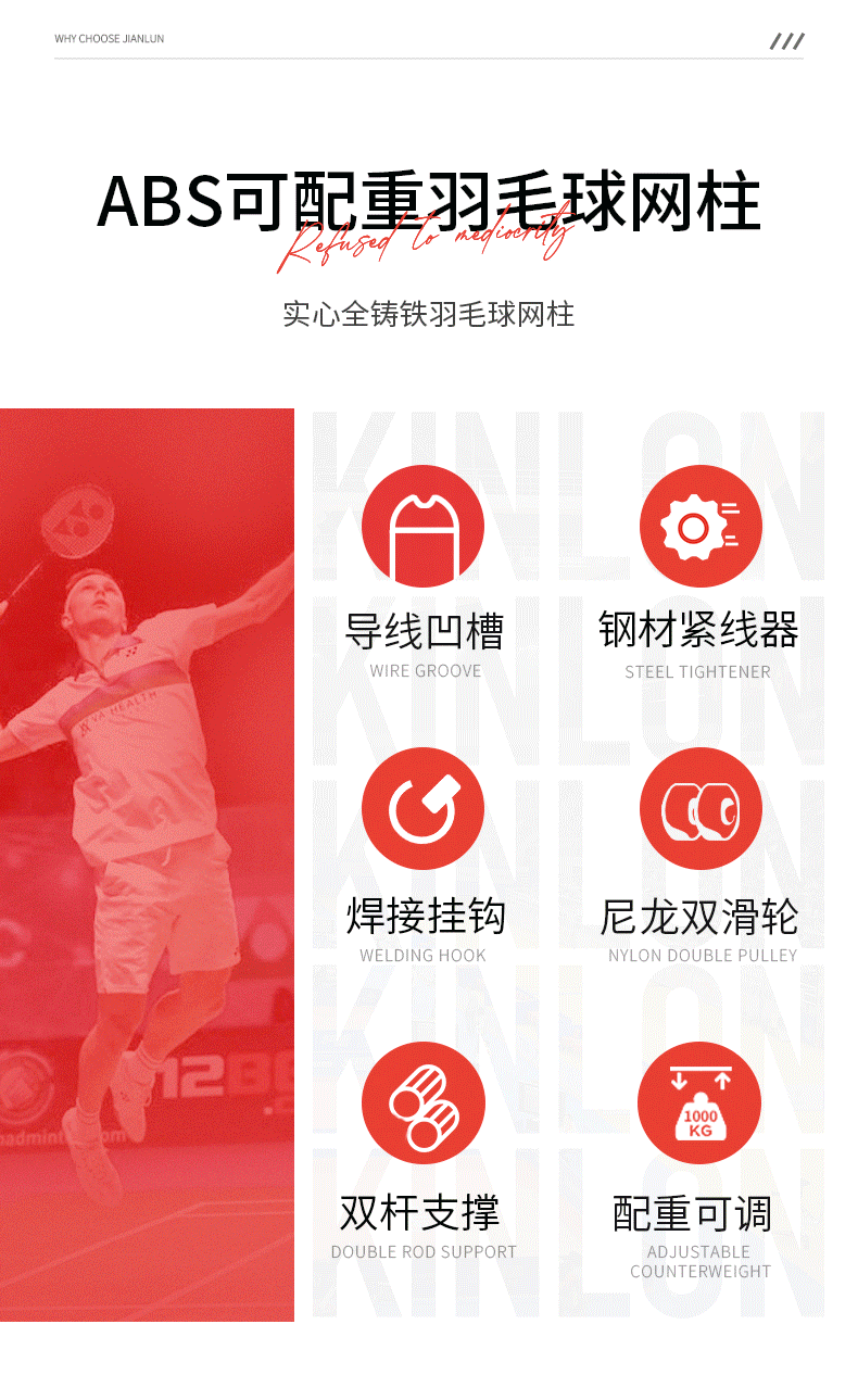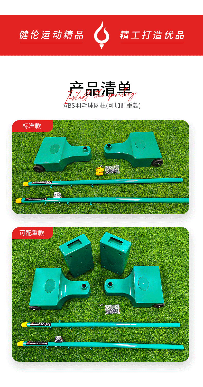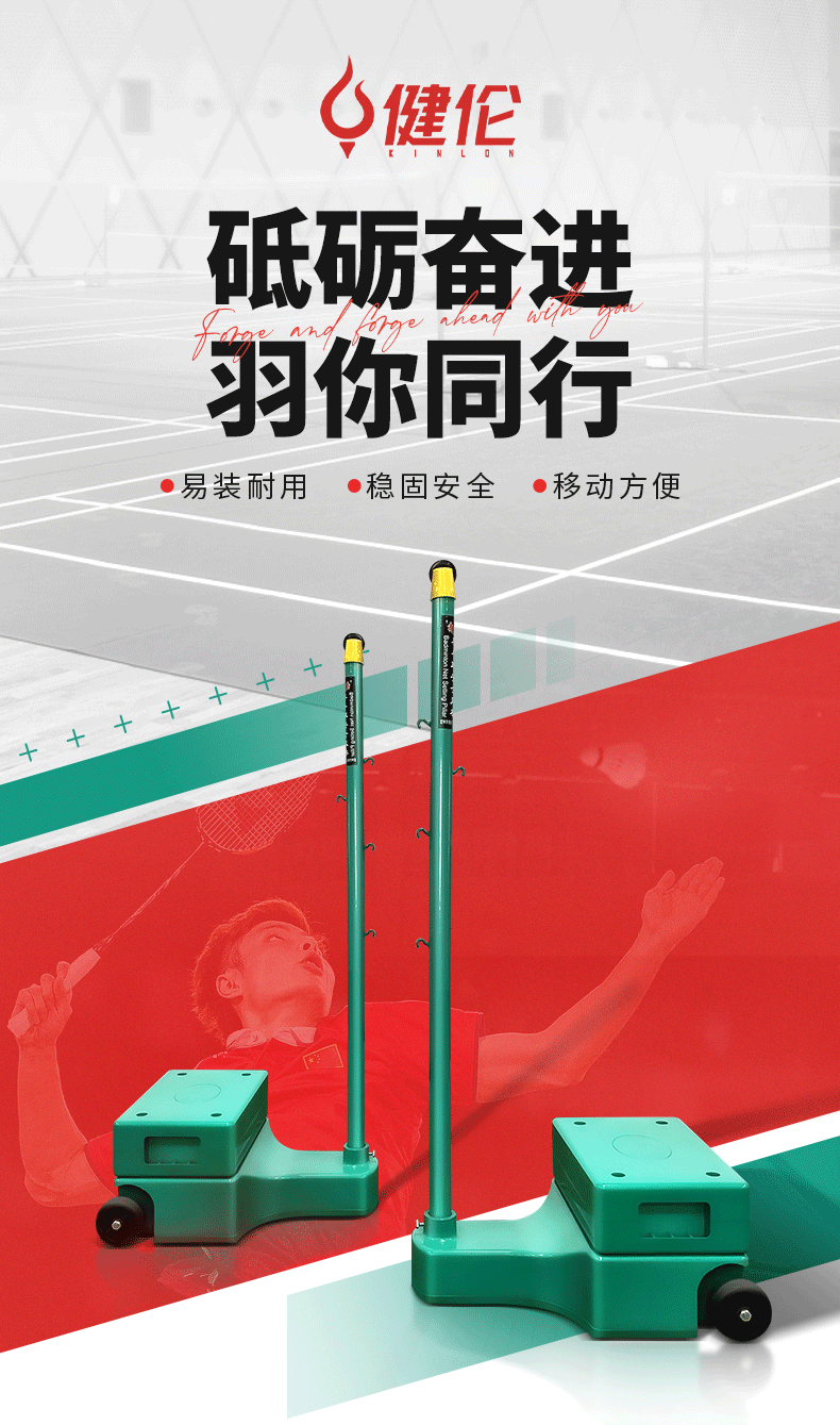 健倫(JEEANLEAN)JL-2913羽毛球柱網(wǎng)架移動便攜標(biāo)準(zhǔn)款比賽專用ABS羽毛球柱含球網(wǎng) 自營