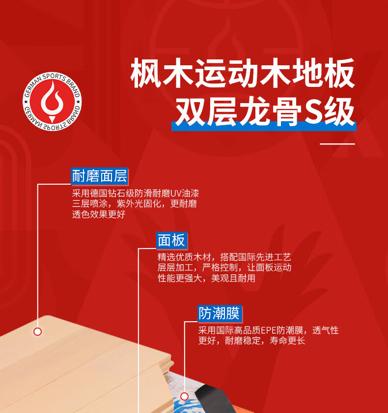 健倫籃球場(chǎng)運(yùn)動(dòng)地板楓樺木地板比賽級(jí)專(zhuān)用實(shí)木地板舞蹈室舞臺(tái)地板 自營(yíng)