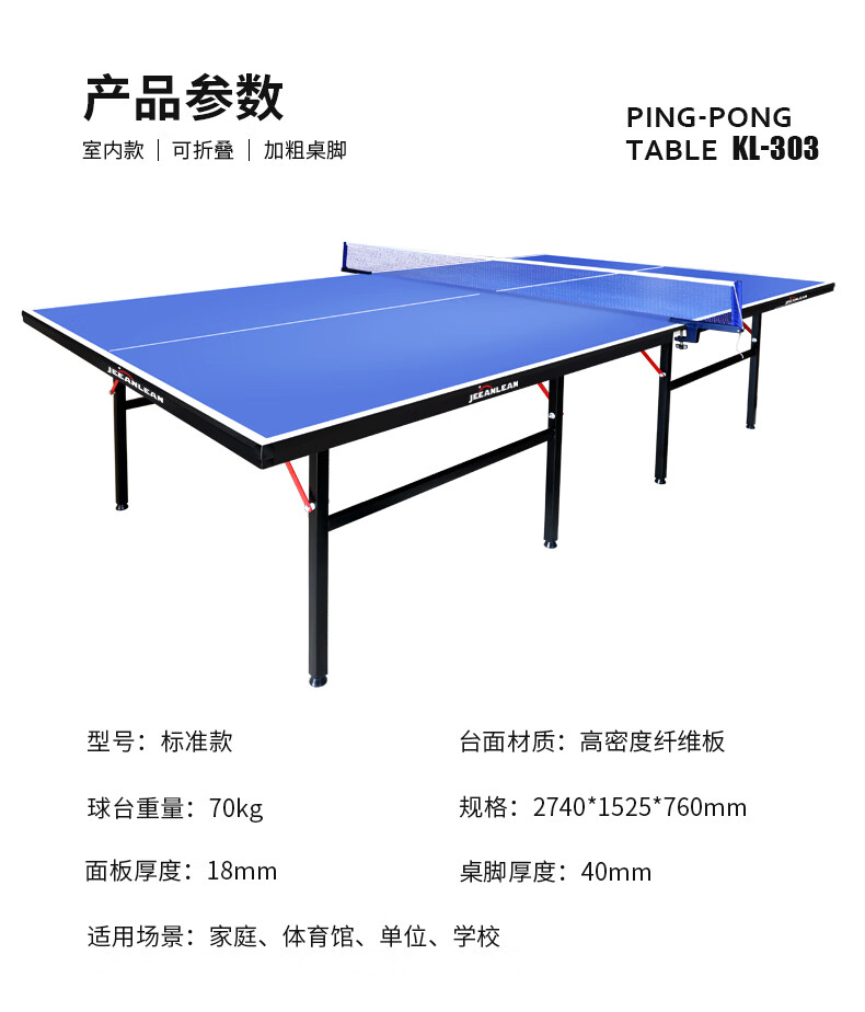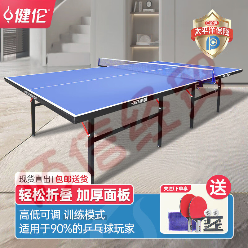 健倫乒乓球桌室內(nèi)家用可折疊移動標準乒乓球臺JLAC109 自營