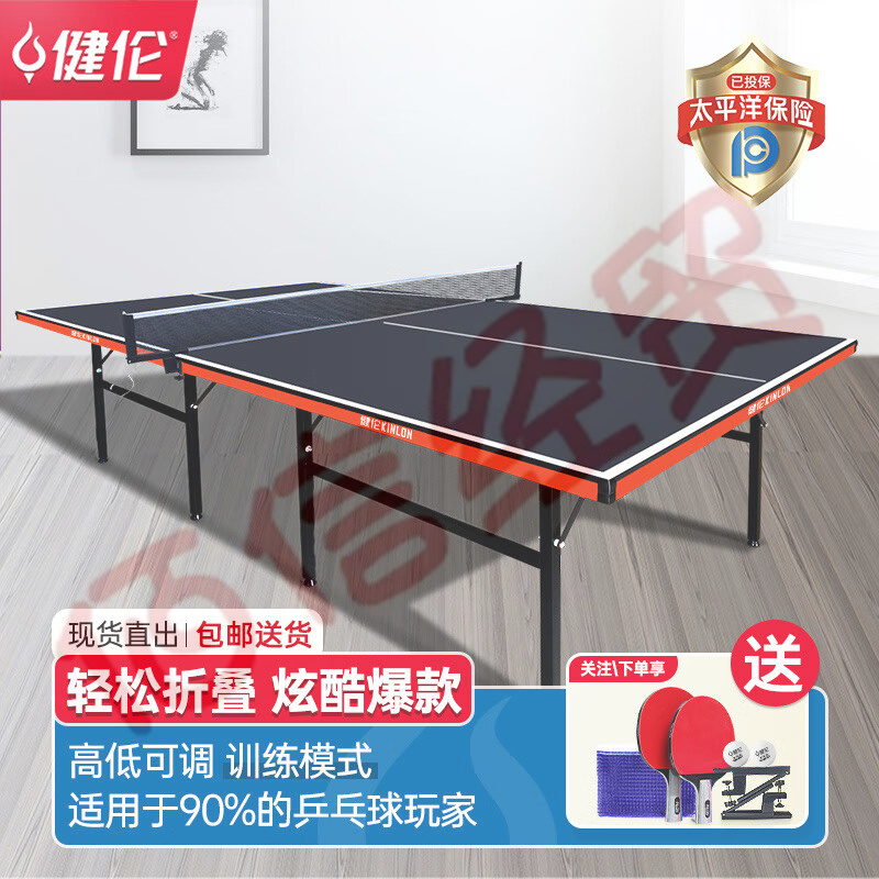 健倫乒乓球桌室內(nèi)家用可折疊標(biāo)準(zhǔn)移動乒乓球臺 黑橙標(biāo)準(zhǔn)款JLAC107 自營