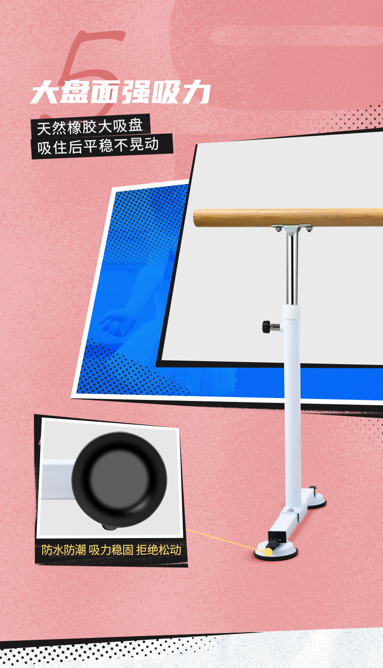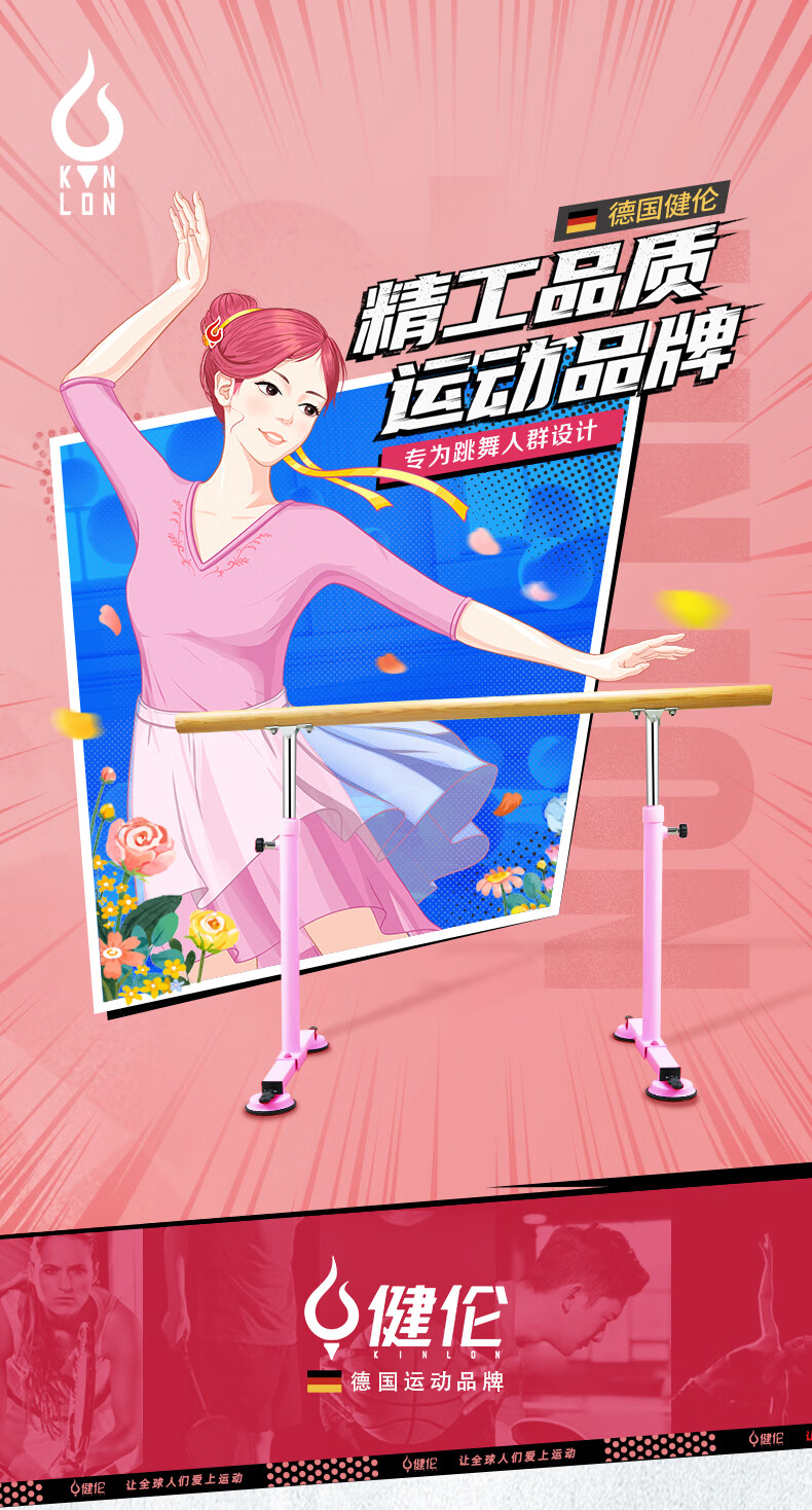 健倫(JEEANLEAN)JL-P25SD舞蹈把桿家用壓腿型成人兒童便攜移動(dòng)吸盤把桿粉色2.5米 自營(yíng)