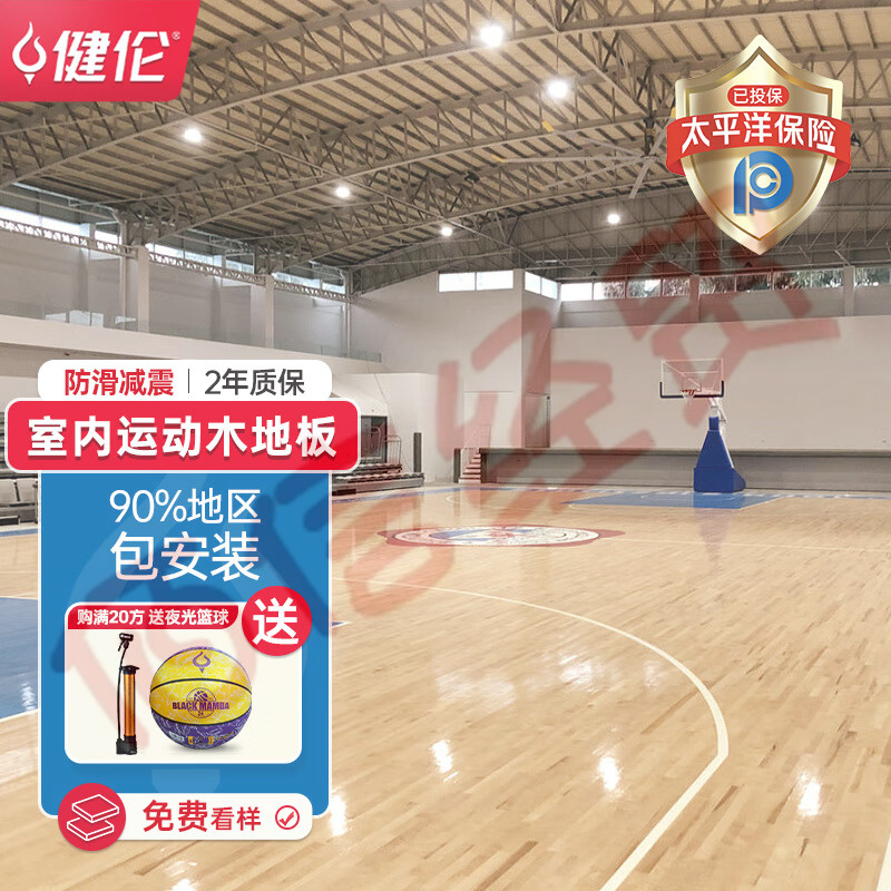 健倫籃球場實(shí)木運(yùn)動(dòng)地板室內(nèi)體育館羽毛球場舞蹈室楓樺木雙龍骨C級(jí) 自營