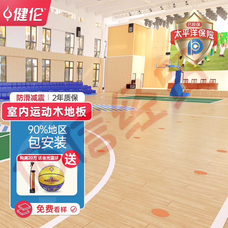 健倫單龍骨B級(jí)強(qiáng)化型體育運(yùn)動(dòng)場(chǎng)館專(zhuān)業(yè)楓木運(yùn)動(dòng)木地板 自營(yíng)