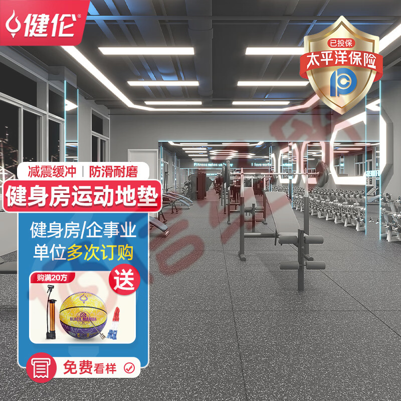 健倫健身墊隔音地膠墊橡膠地墊防滑減震防滑緩沖地板50*50*5.0帶槽款 自營(yíng)