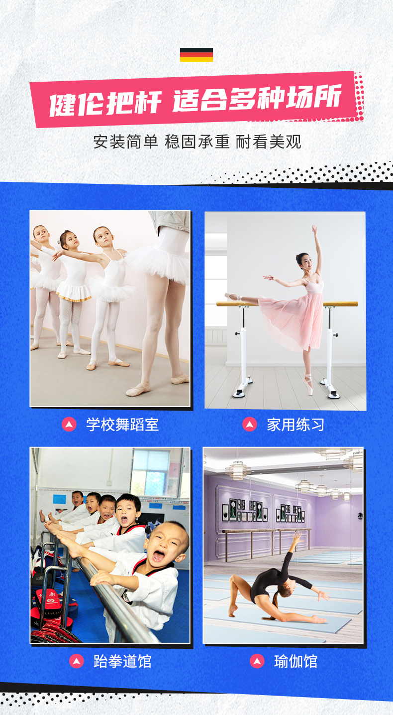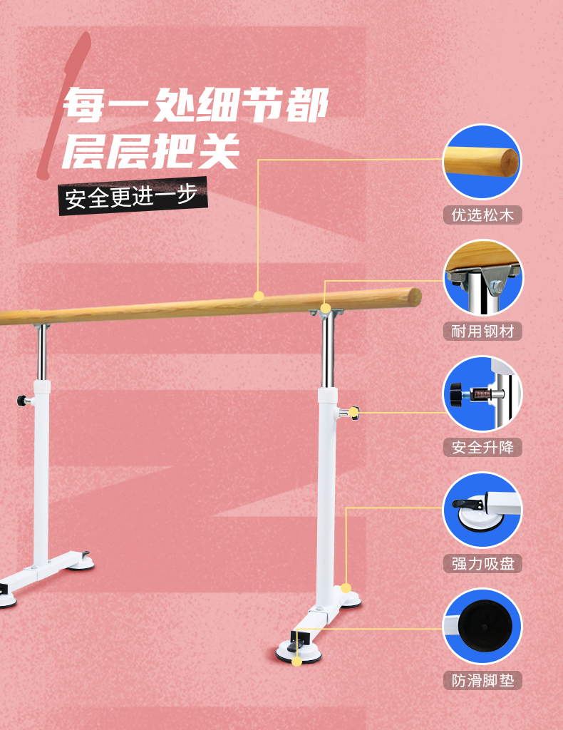 健倫(JEEANLEAN)舞蹈把桿家用壓腿型成人兒童便攜移動(dòng)吸盤式把桿 粉色1米JL-P10SD 自營
