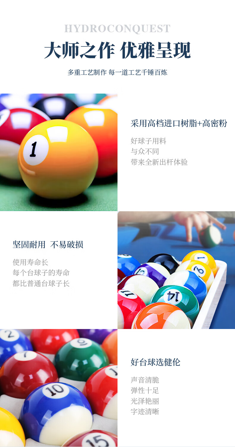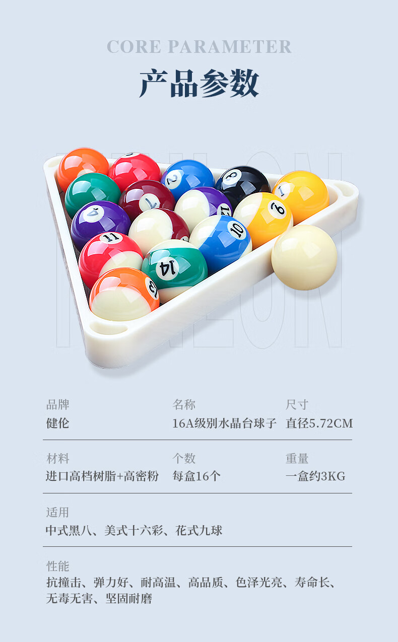 健倫臺球子黑8水晶球花式16彩標(biāo)準(zhǔn)大號球臺球用品桌球TV57.2mmJL-TQ04 自營