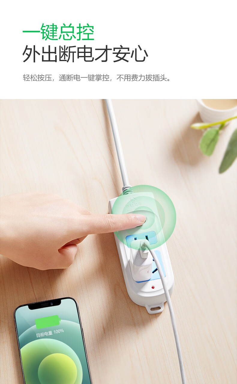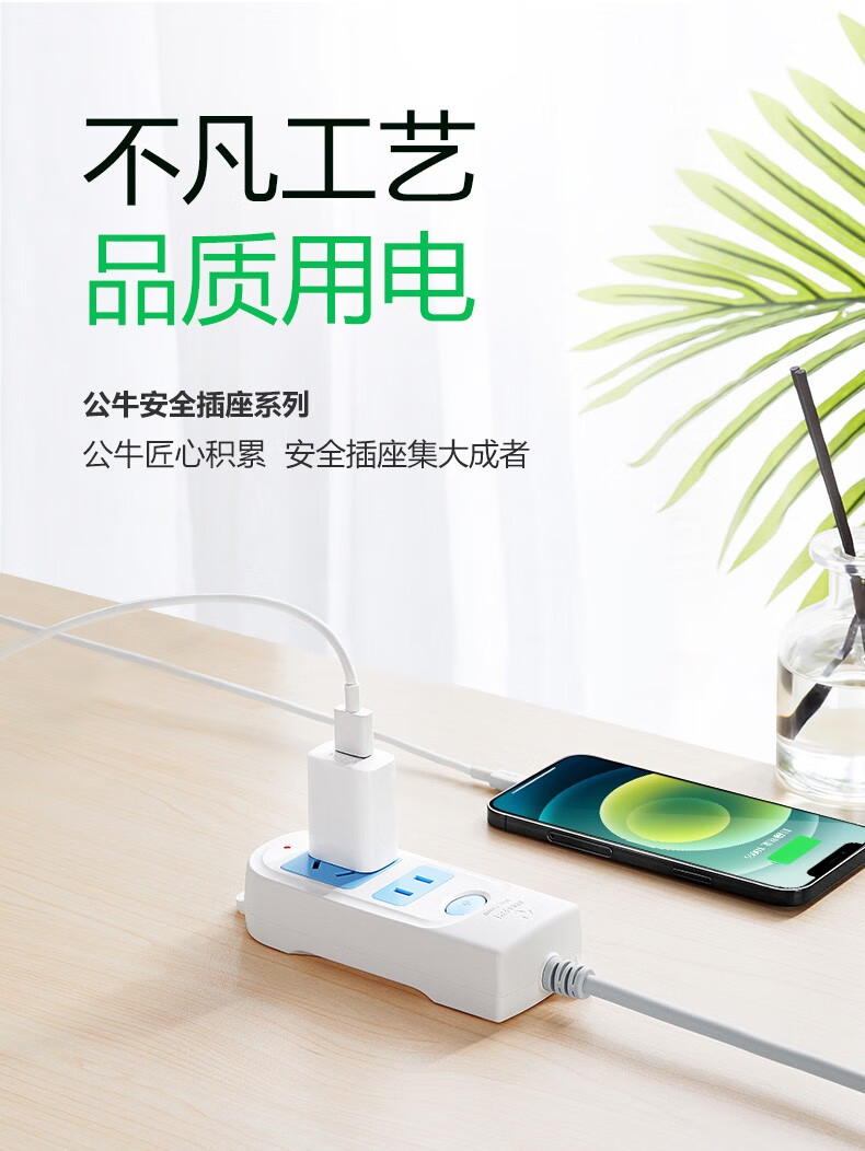 公牛插座公牛插排不帶線無(wú)線插排自行接線家用接線板無(wú)線排插 總控4位【414K】