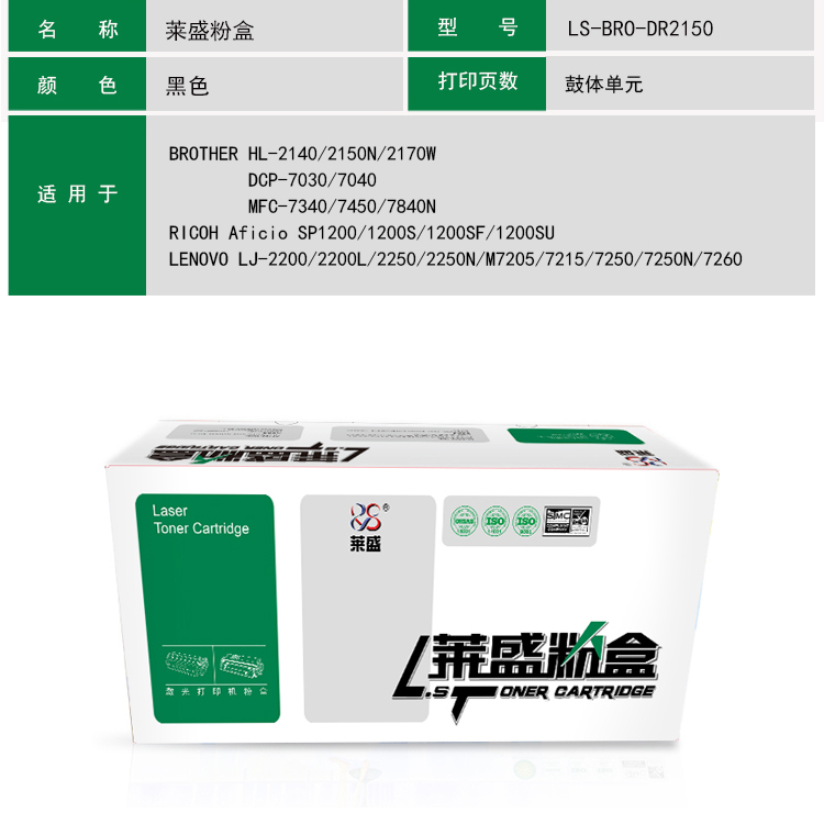 萊盛LS-BRO-DR2150 硒鼓 黑色 適用于BROTHER HL-2140/2150N/2170W,DCP-7030/7040,MFC-7340 自營