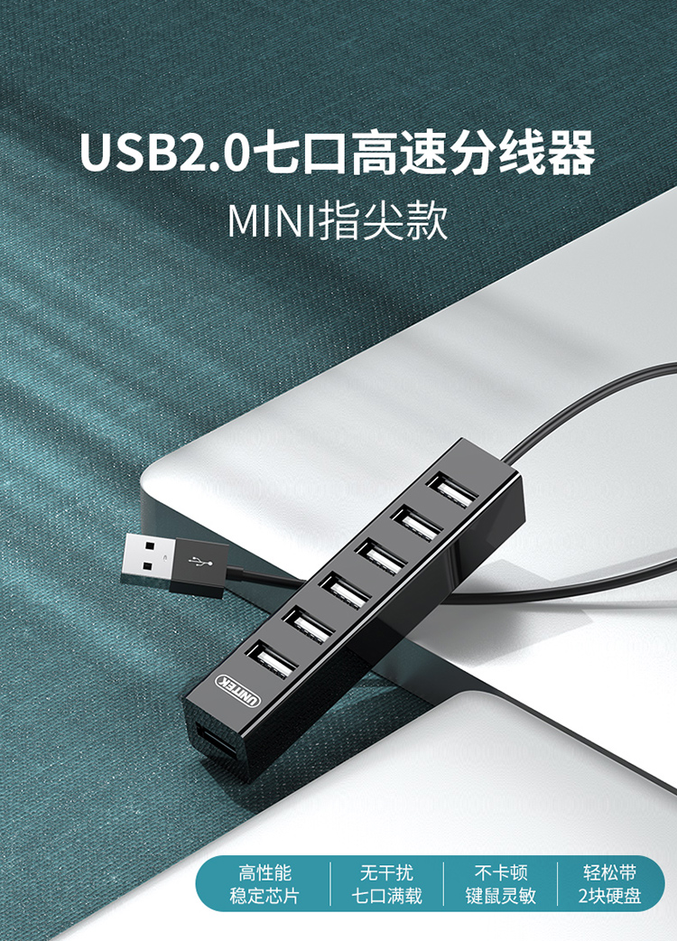 優(yōu)越者(UNITEK)usb分線器2.0帶電源高速拓展塢7口HUB集線器筆記本電腦USB擴(kuò)展塢轉(zhuǎn)換器Y-2160ABK