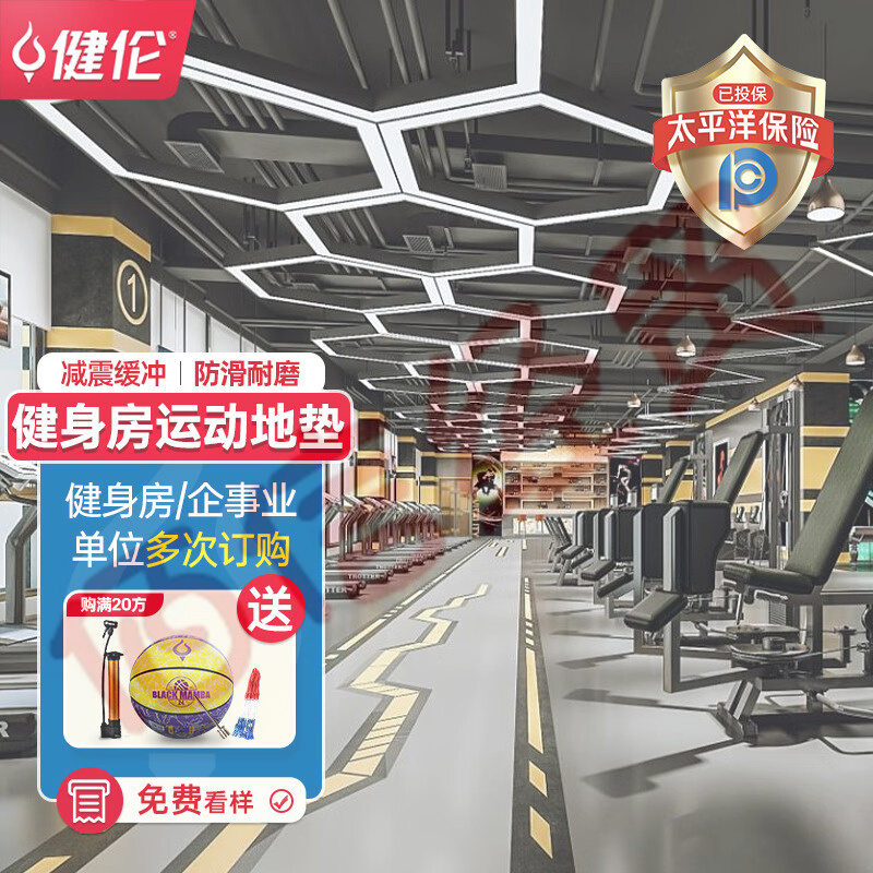 健倫 健身房橡膠地墊運動地膠啞鈴杠鈴防滑減震防砸緩沖隔音健身地板 自營