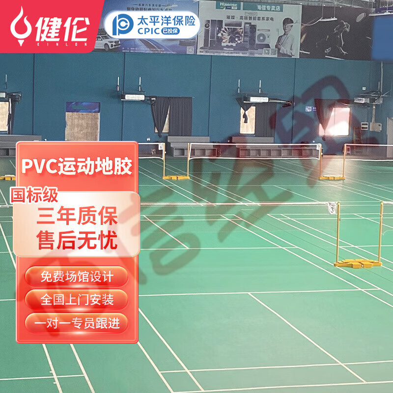 健倫(JEEANLEAN)JL-GPU08室內(nèi)專業(yè)運動場地羽毛球場館防滑地膠專用PVC地墊 自營
