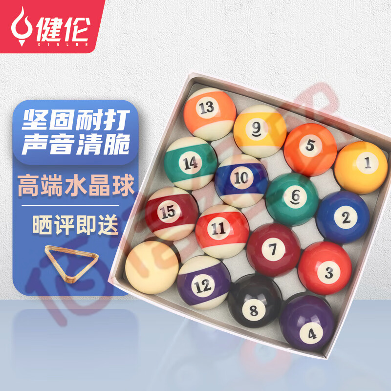 健倫臺(tái)球桌球黑8臺(tái)球子水晶球美式十六彩大號(hào)桌球樹脂球57.2mmJL-TQ01 自營(yíng)