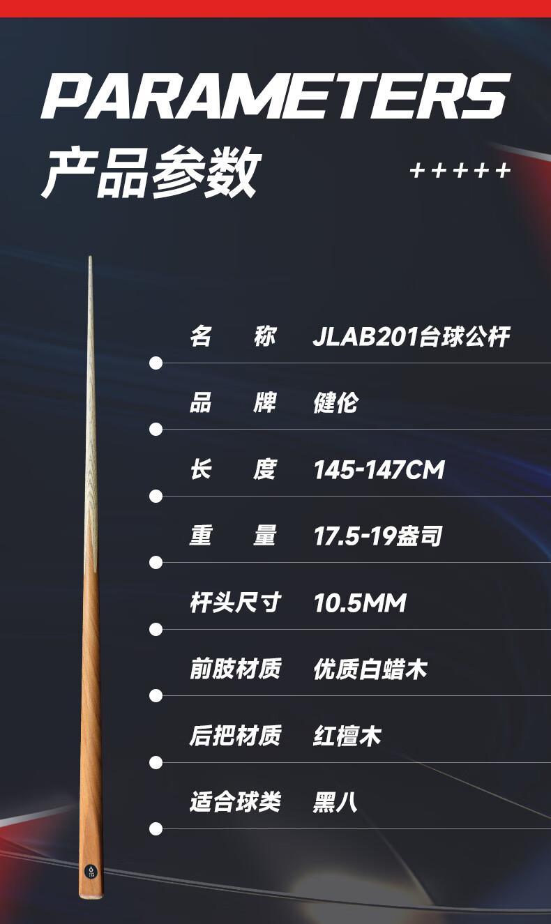 健倫臺球桿小頭會員黑8通桿球房專用斯諾克公桿16彩中式桌球桿 10.5MM 自營