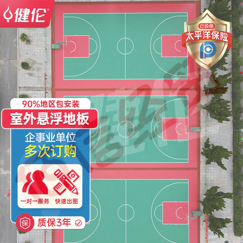 健倫籃球場懸浮地板戶外輪滑懸浮式拼裝地板室外懸浮地墊16宮格軟連接 自營
