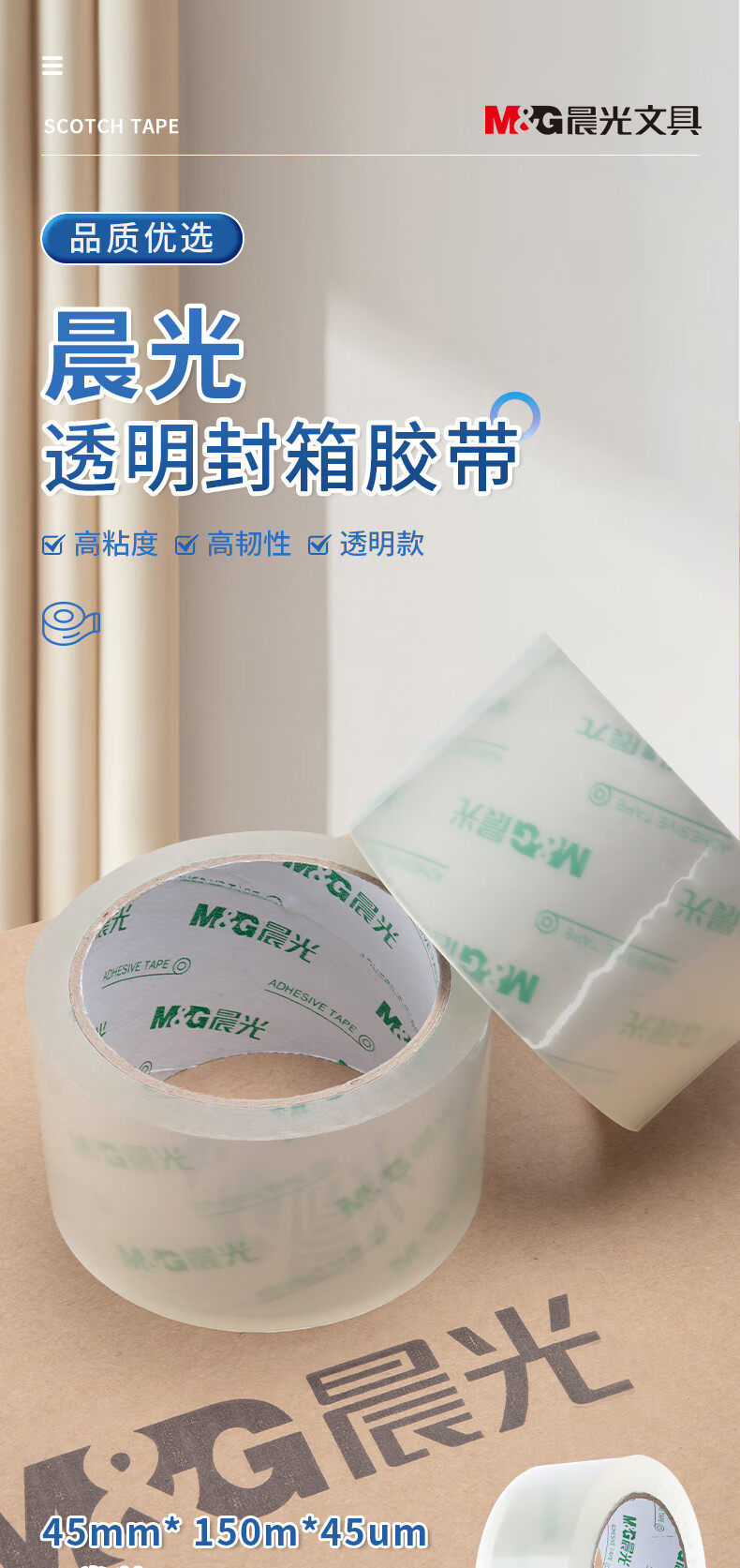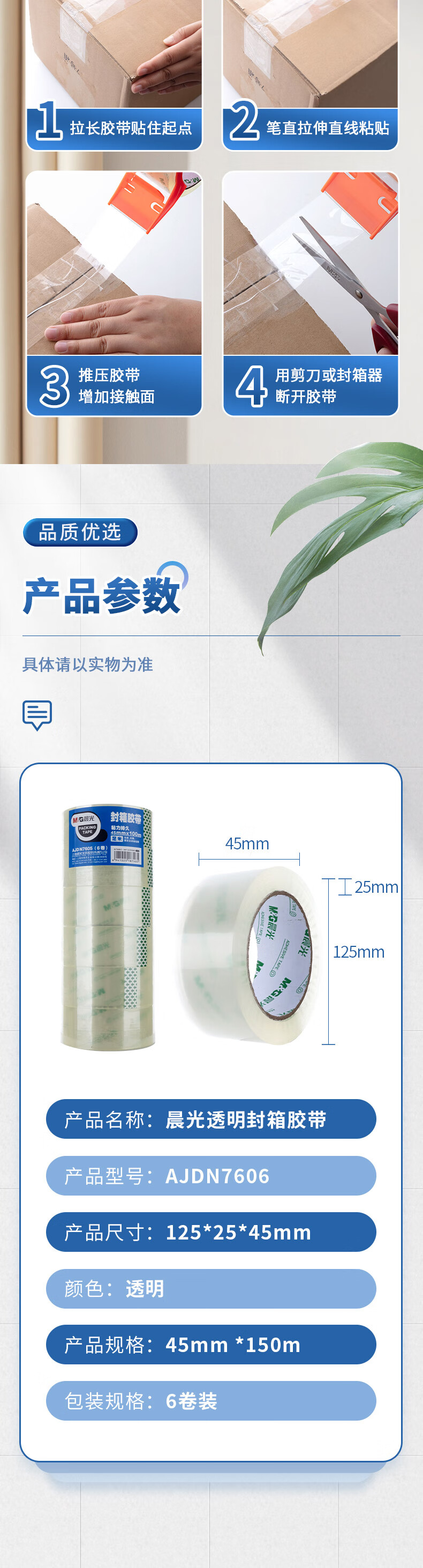 晨光(M&G)文具透明封箱膠帶打包膠帶大膠布 45mm*150m*45um 6卷/筒 快遞工廠倉庫商超辦公用品AJDN7606 自營