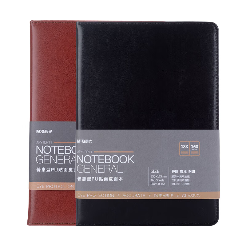 晨光(M&G)文具B5/18K 160張辦公筆記本 會(huì)議記錄PU貼面皮面本 普惠型日記本商務(wù)記事本子 單本裝APY1DP11 考研 自營