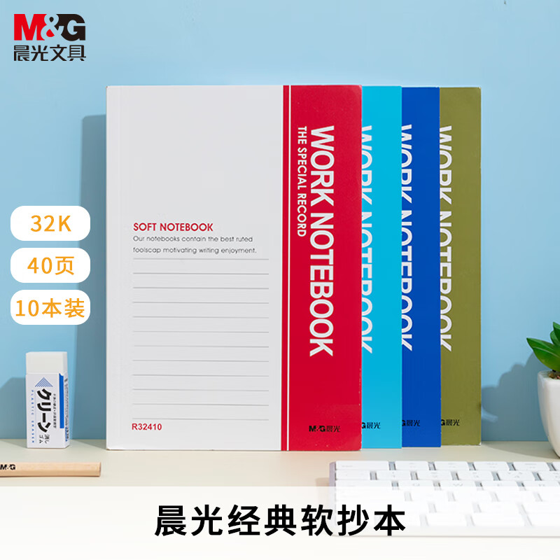 晨光(M&G)文具32k記事本40張 軟抄筆記本本子辦公用品薄款a5 小學(xué)生錯(cuò)題本隨身日記本 10本裝R32410 自營