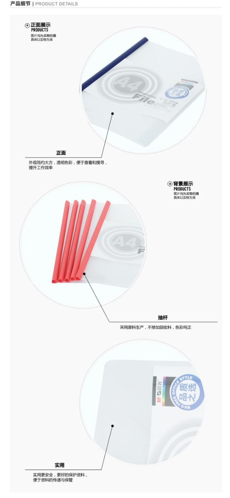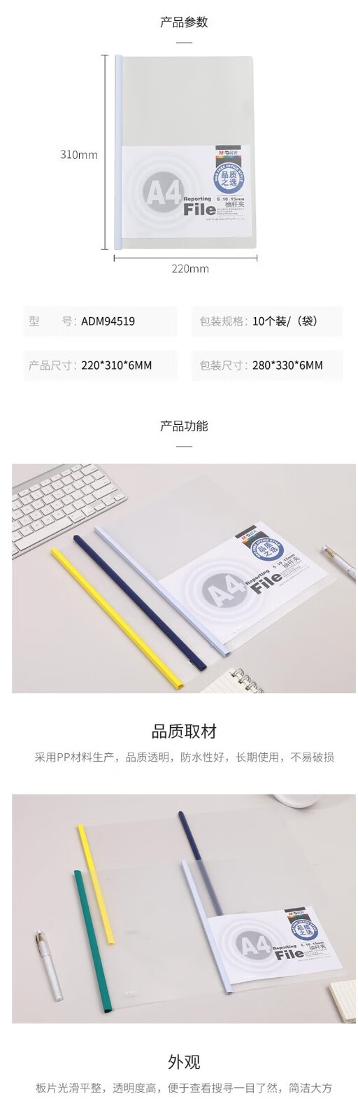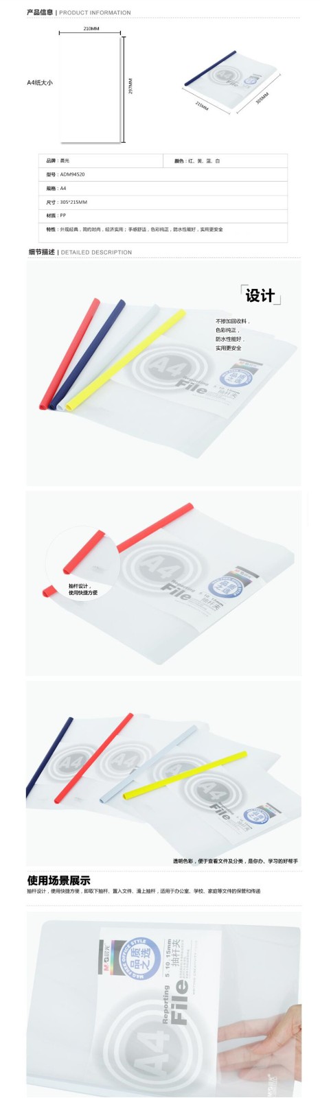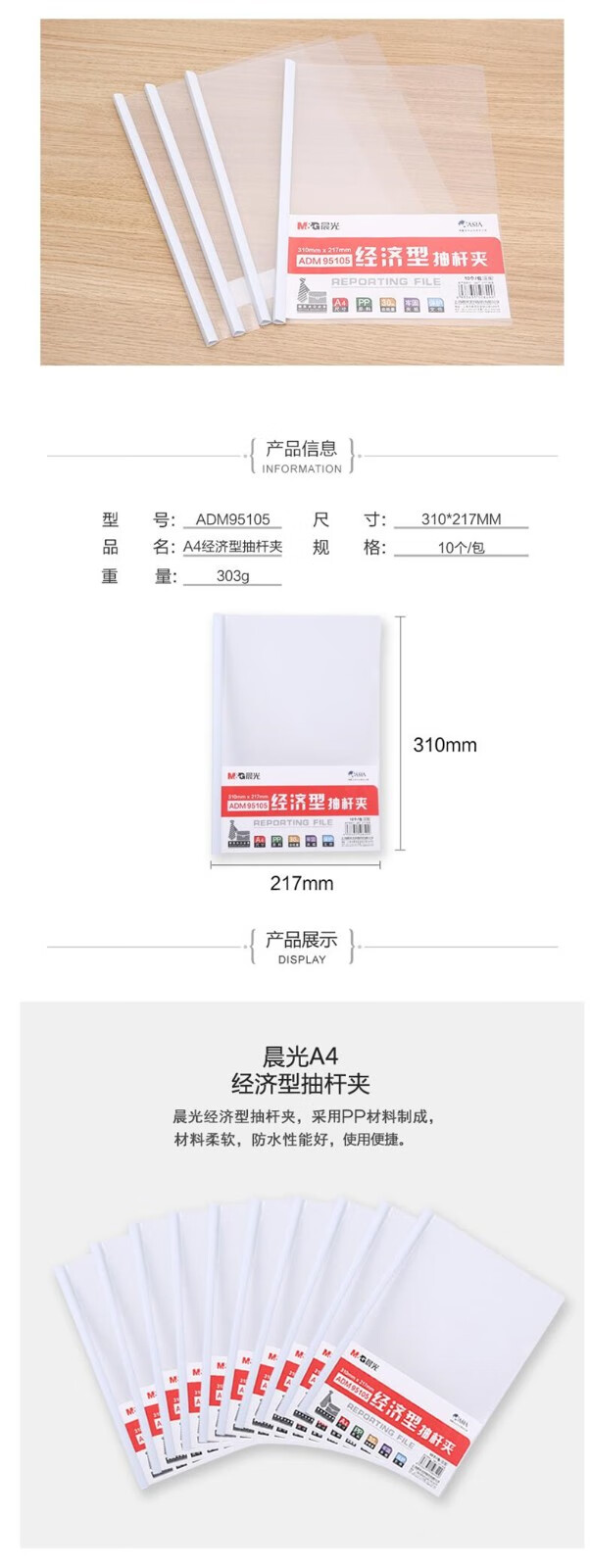 晨光(M&G) 抽桿夾辦公報告夾 資料整理收納文件夾拉桿夾學生考試收納 ADMN4279抽桿夾25mm白色5個/包 自營
