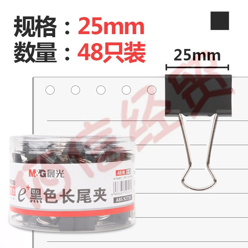 晨光(M&G)長尾夾大號夾子小號多功能書夾子試卷夾燕尾夾鳳尾夾文件夾子文具票夾辦公用品金屬小夾子固定 黑色-25mm(ABS92735)48只 自營