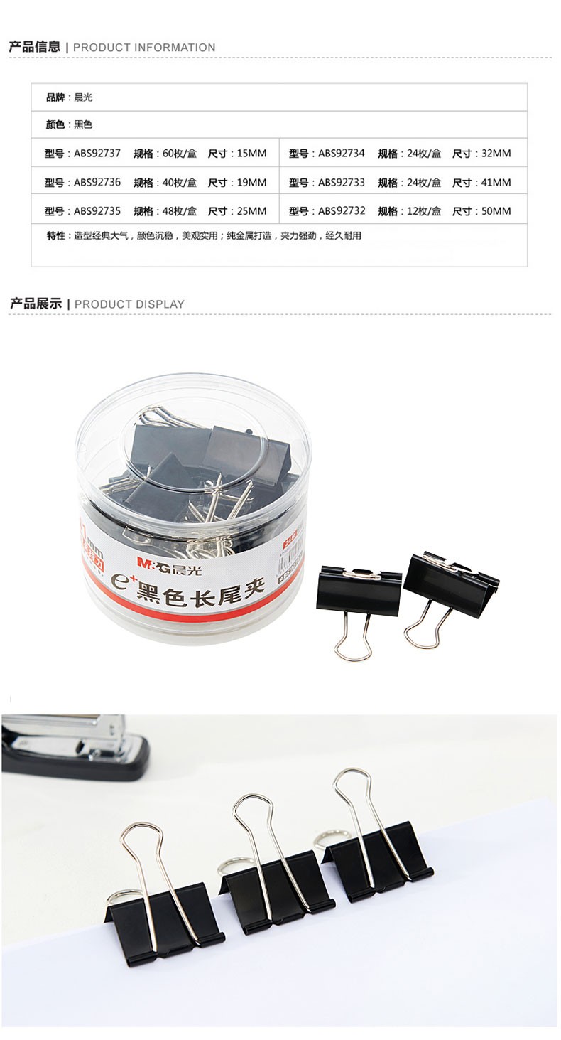 晨光(M&G)長(zhǎng)尾夾大號(hào)夾子小號(hào)多功能書夾子試卷夾燕尾夾鳳尾夾文件夾子文具票夾辦公用品金屬小夾子固定 彩色-50mm(ABS92738)12只 自營(yíng)