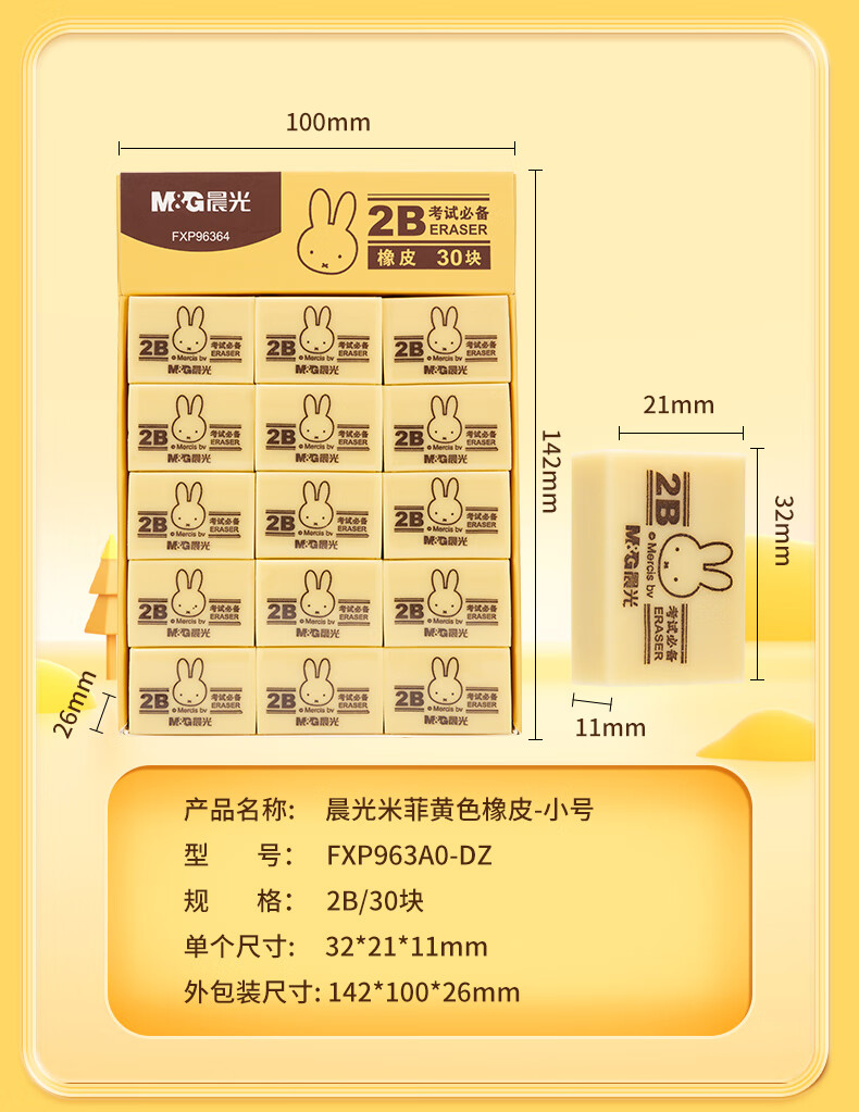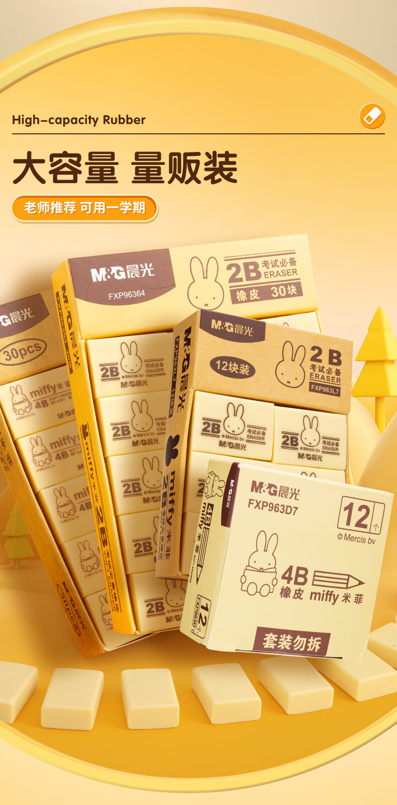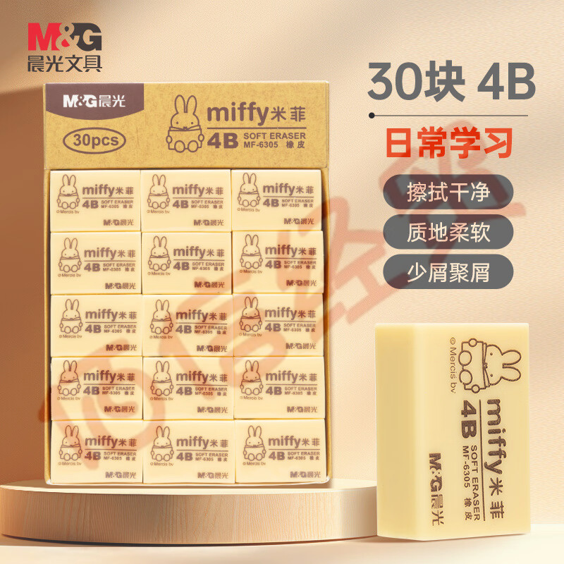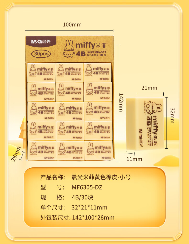 晨光(M&G)文具4B黃色小號(hào)橡皮 學(xué)生美術(shù)繪圖考試橡皮擦 米菲系列可愛(ài)橡皮擦 30塊/盒MF6305 自營(yíng)