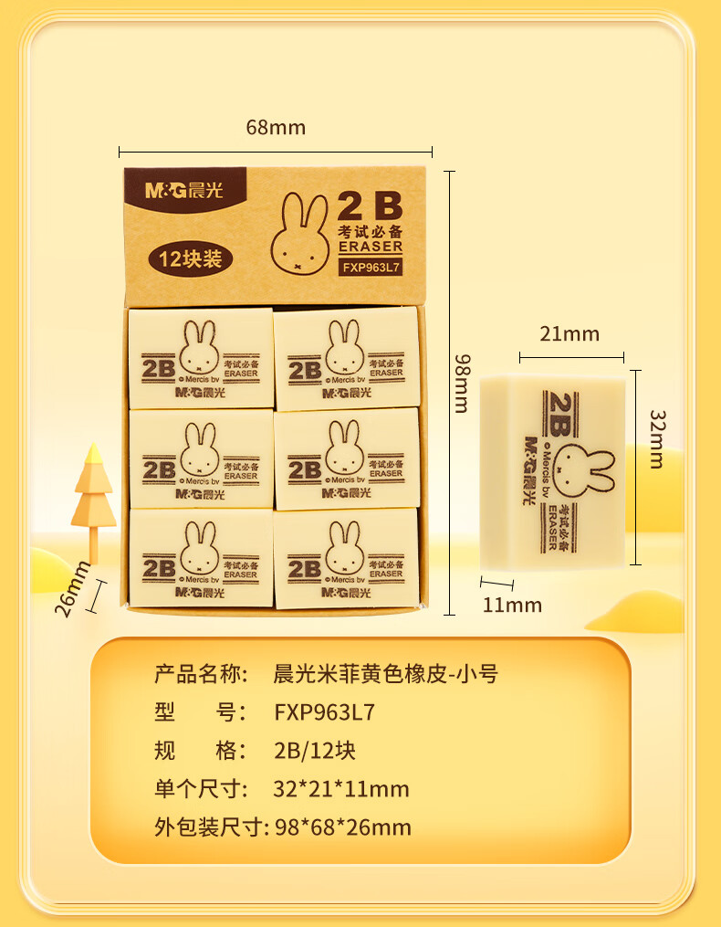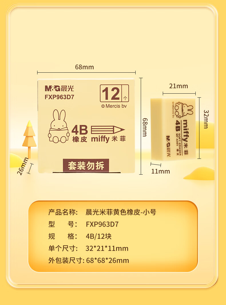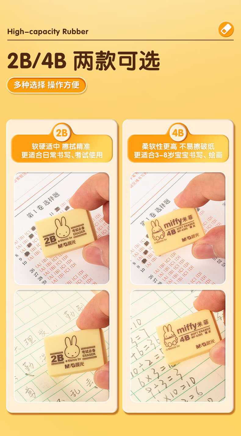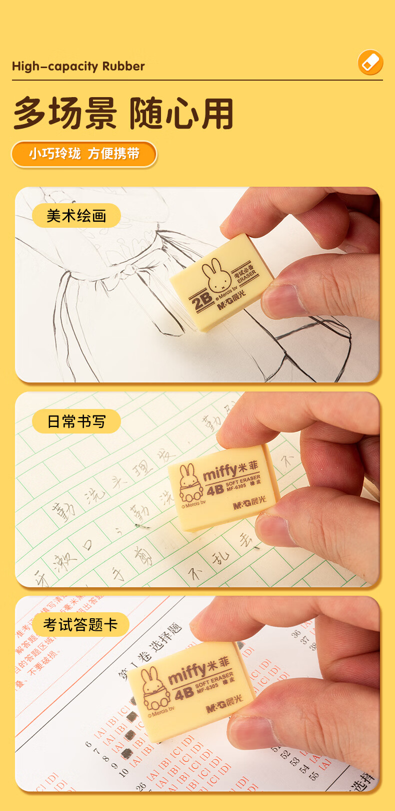 晨光(M&G)文具4B黃色小號(hào)橡皮 學(xué)生美術(shù)繪圖考試橡皮擦 米菲系列可愛(ài)橡皮擦 30塊/盒MF6305 自營(yíng)