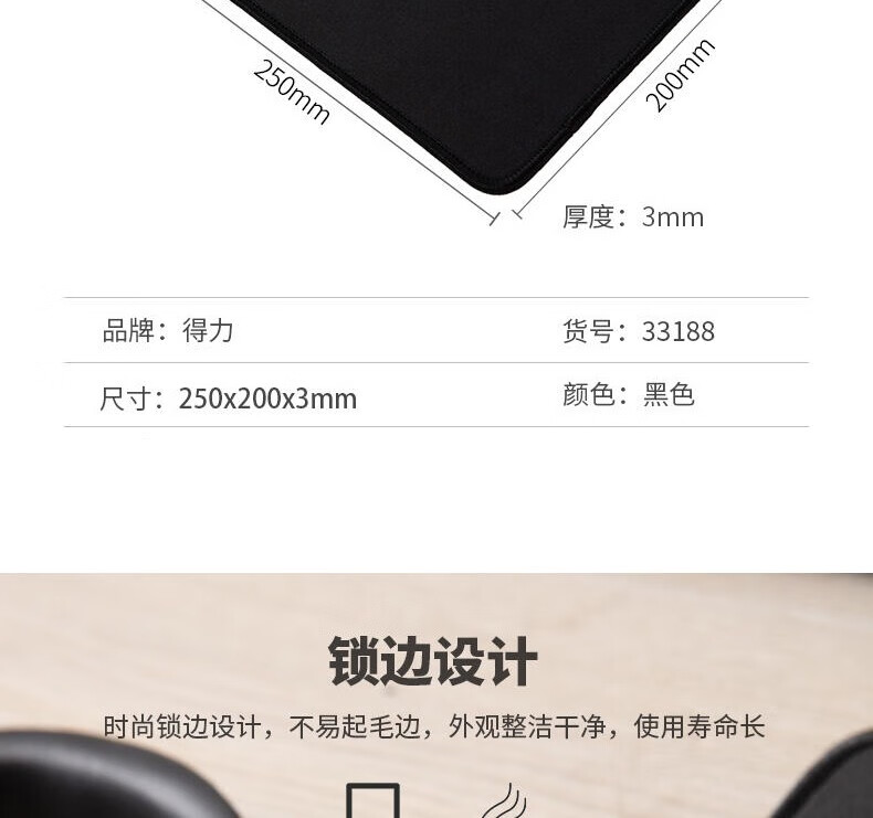 得力 (deli) 鼠標(biāo)墊 競(jìng)技游戲鼠標(biāo)墊 平順耐用加厚鼠標(biāo)墊 250*200mm 黑色無(wú)鎖邊 3692 自營(yíng)