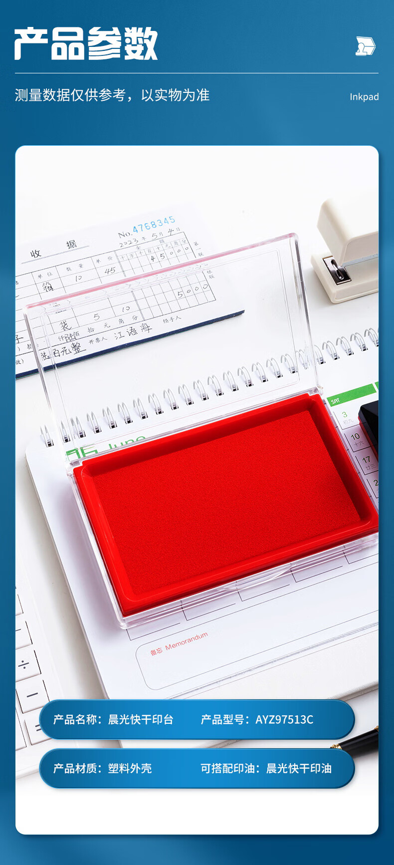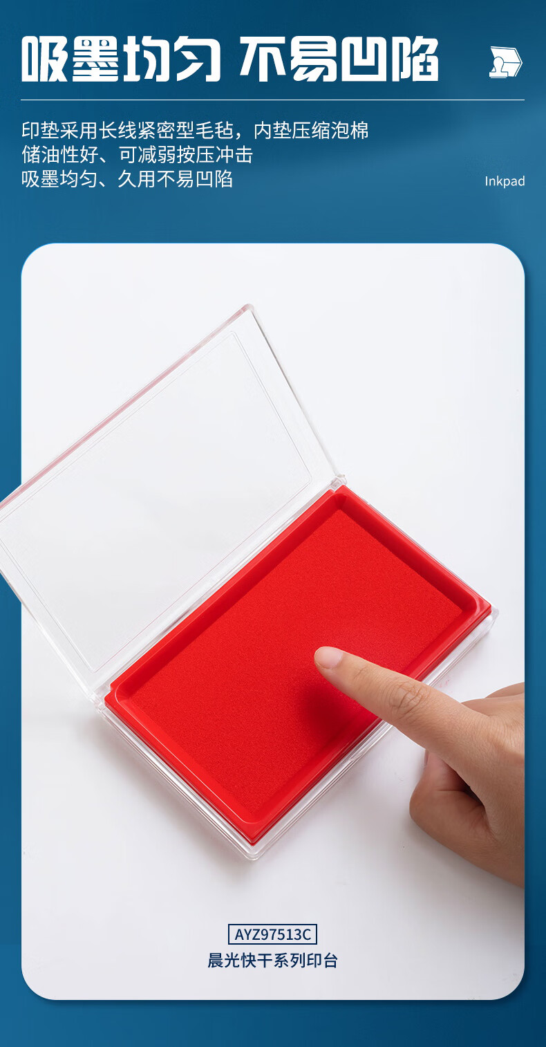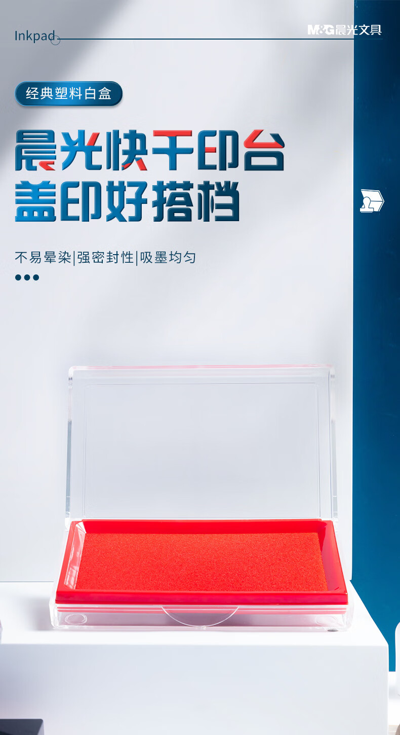 晨光(M&G)文具138*88mm透明外殼方形快干印臺(tái)印泥 財(cái)務(wù)專用 辦公用品 紅色單個(gè)裝AYZ97513 自營