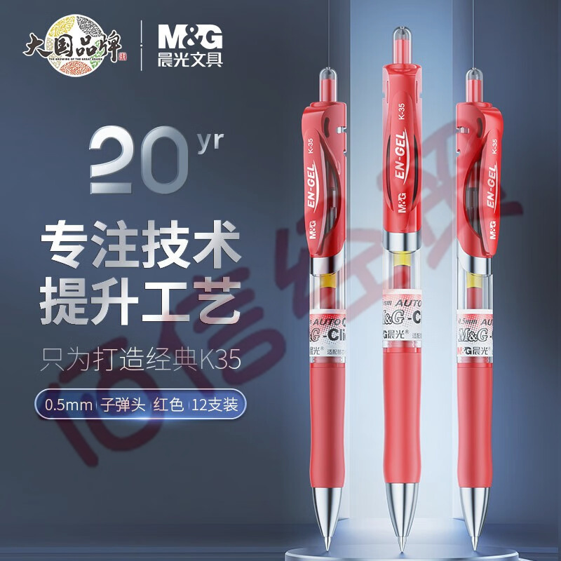晨光(M&G)按動(dòng)中性筆k35水筆學(xué)生用考試碳素黑色0.5mm水性簽字筆芯按壓式子彈頭墨藍(lán)黑紅筆辦公 【晨光K35-紅色】12支 自營(yíng)