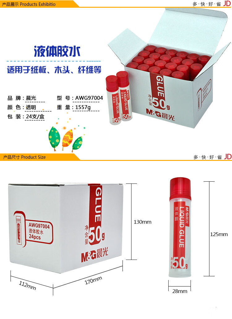 晨光(M&G) 文具50ml高粘度液體膠辦公快干耐用膠水學生手工黏膠(軟膠頭涂抹均勻) 50ml*24支AWG97004 自營