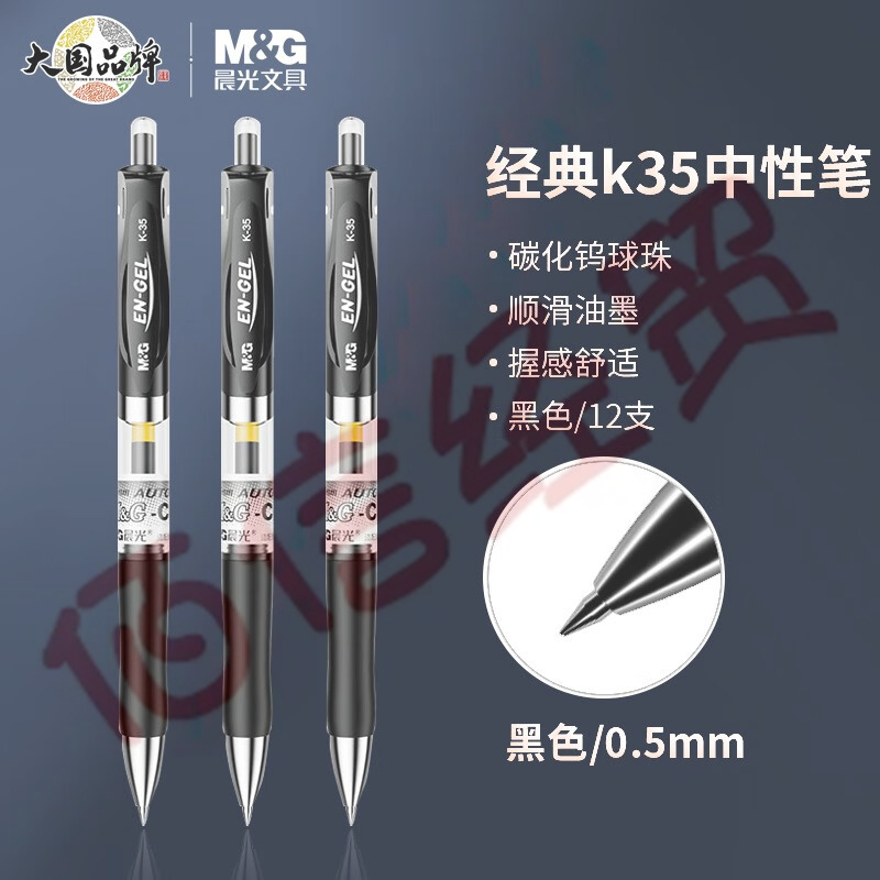 晨光(M&G)按動中性筆k35水筆學(xué)生用考試碳素黑色0.5mm水性簽字筆芯按壓式子彈頭墨藍黑紅筆辦公 【晨光K35-黑色】12支 自營
