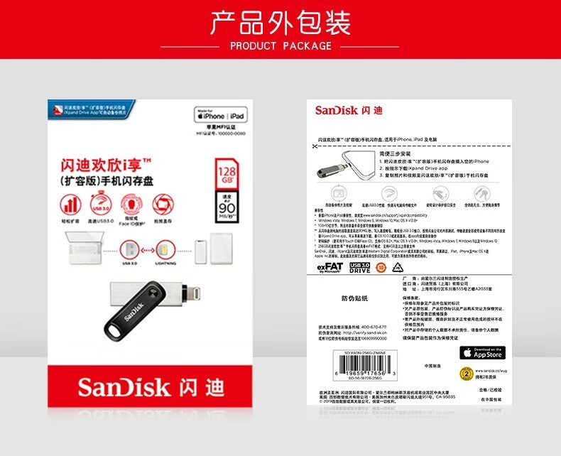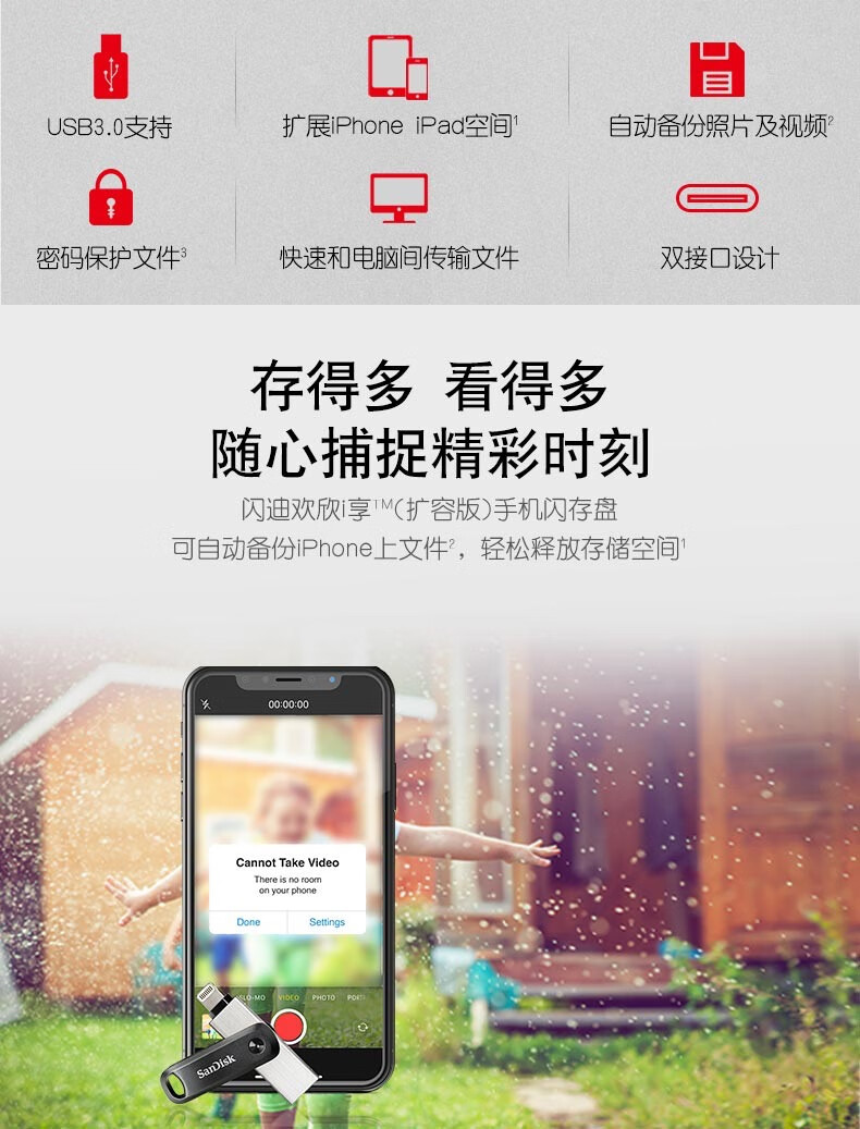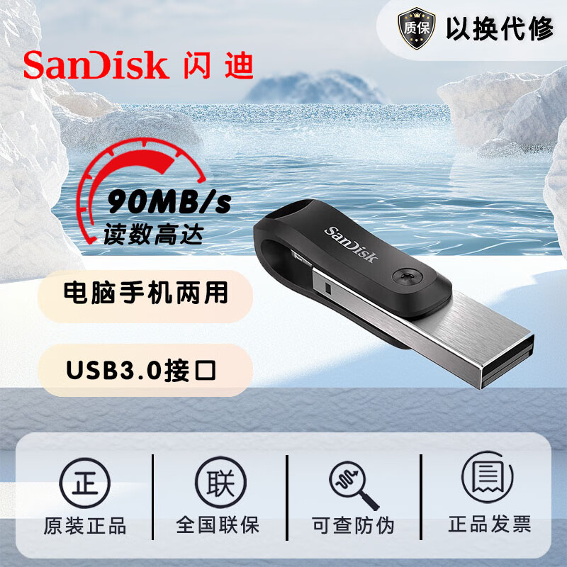 閃迪(SanDisk) 256GB Lightning USB3.1 蘋果手機(jī)U盤 iXpand欣享 iX60歡欣i享 128GB 自營(yíng)