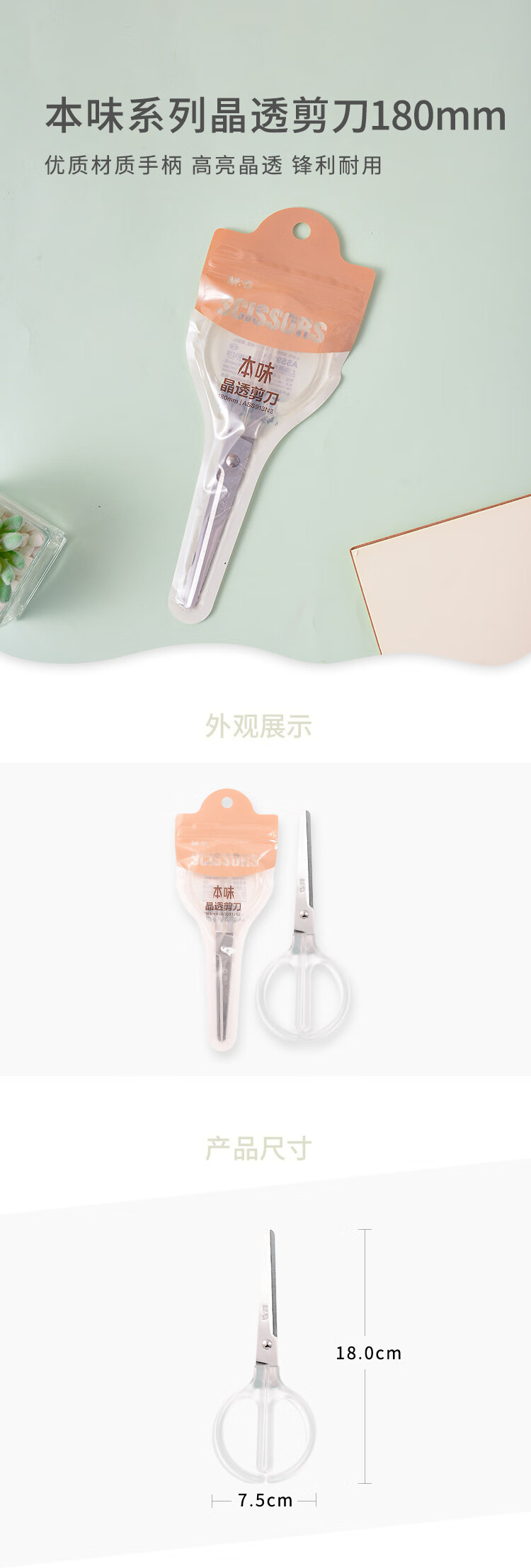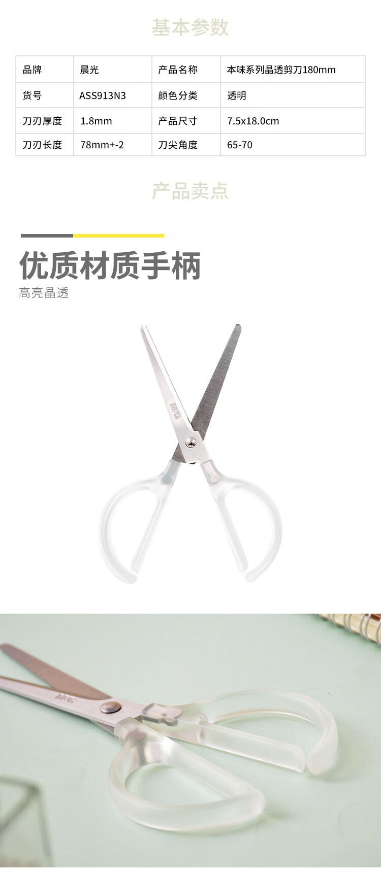 晨光 本味系列晶透剪刀160/180mm高亮晶透鋒利耐用辦公商務(wù)剪刀圓角剪刀頭手工裁剪ASS913N 1把【160mm】913N2 自營(yíng)