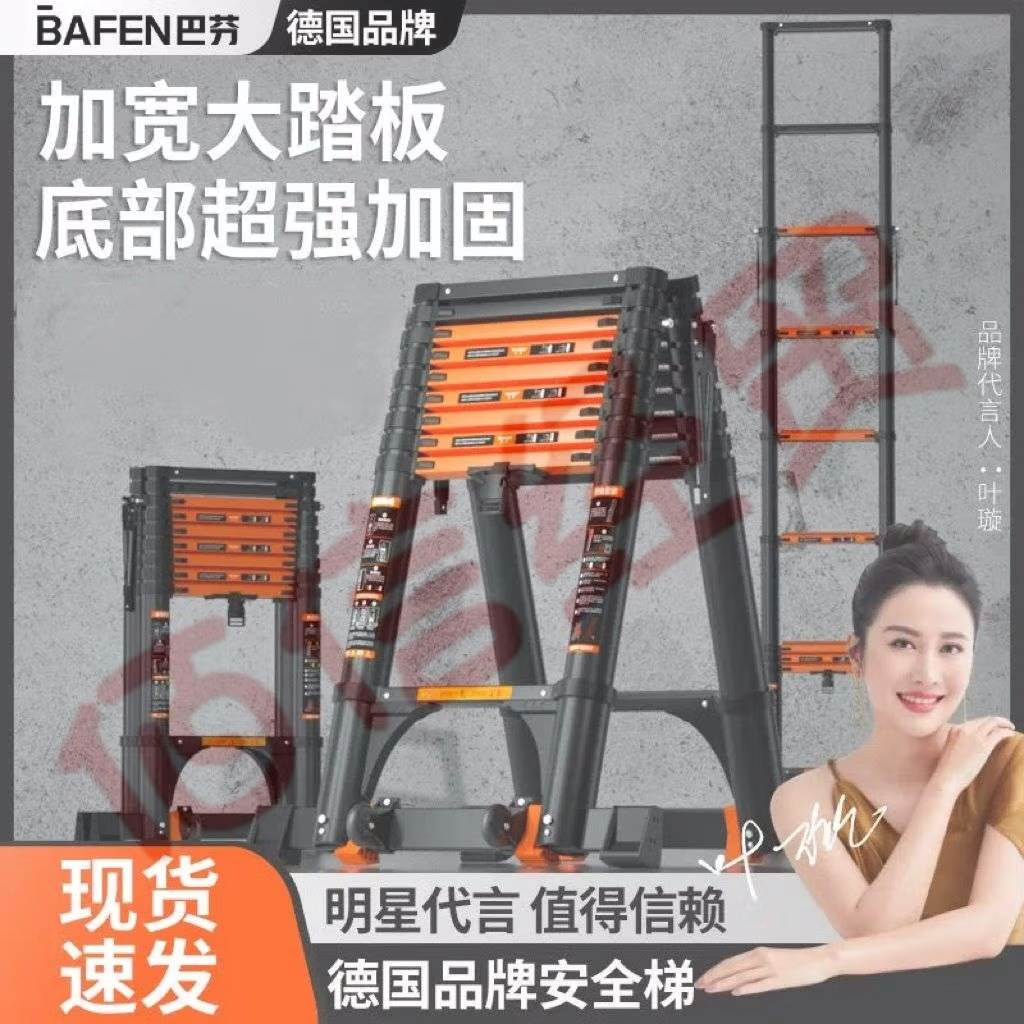 巴芬伸縮梯多功能梯子家用梯人字梯加厚鋁合金工程梯升降直梯折疊樓梯 人字梯2.3米【防滑加寬踏板】 自營