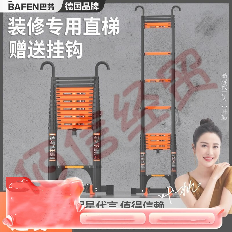 巴芬伸縮梯多功能梯子家用梯人字梯加厚鋁合金工程梯升降直梯折疊樓梯 單面直梯5.5米【靠墻使用+掛鉤】 自營