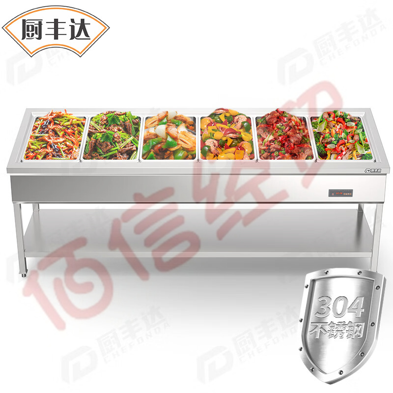 廚豐達(dá) 保溫售飯臺(tái) 保溫臺(tái)商用保溫餐車飯?zhí)帽卮虿团_(tái)自助餐保溫爐304材質(zhì) 六大格-免組裝(其它型號(hào)咨詢客服) 自營